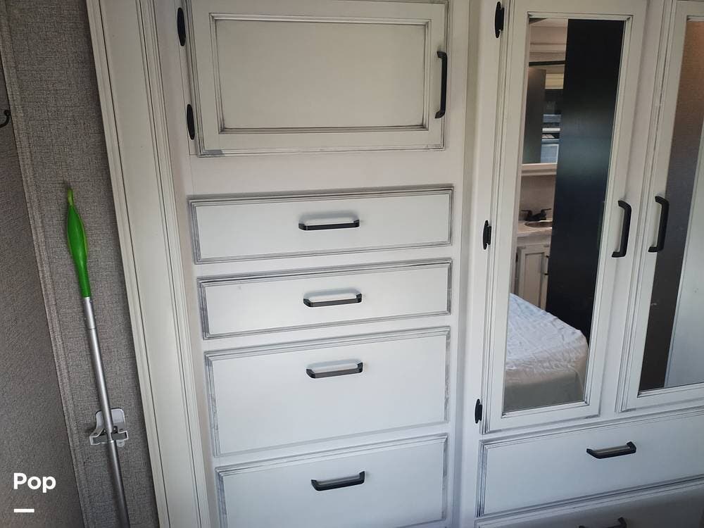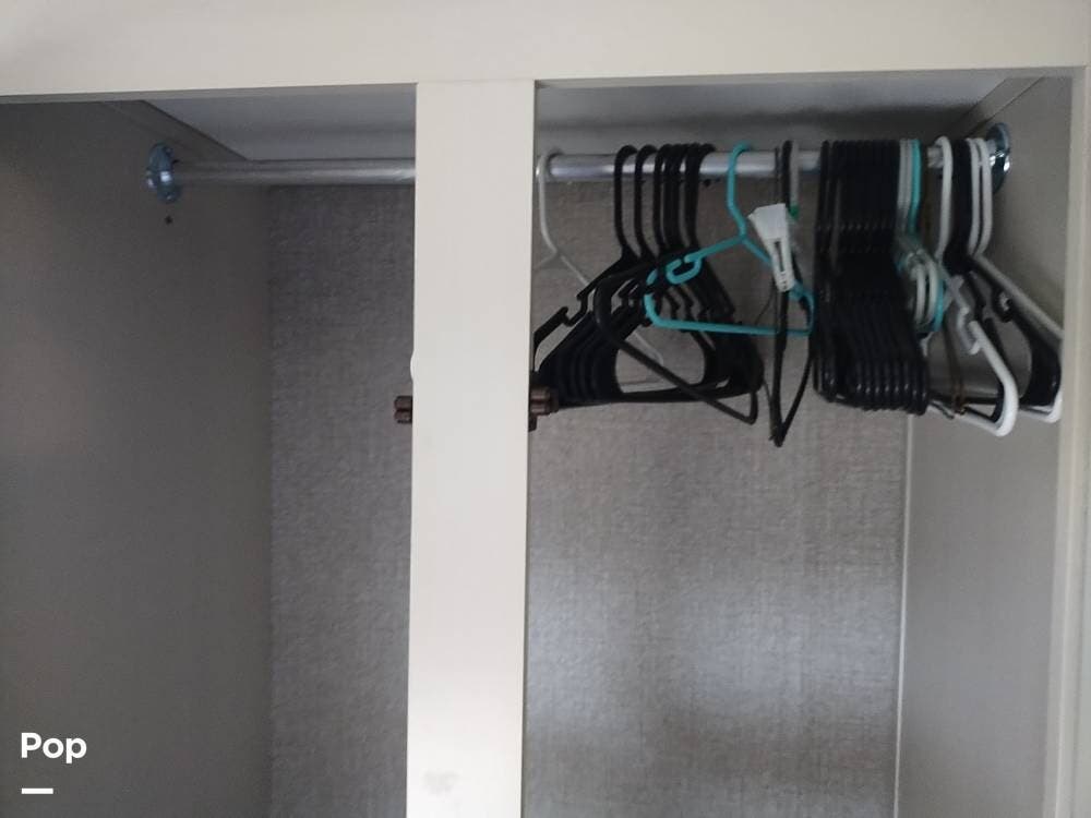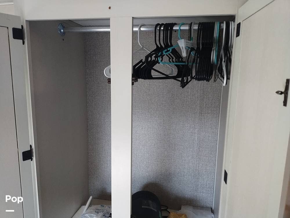 The rear bedroom features a queen bed, complete with a full-length mirrored hardwood door, coordinated cabinet doors, and a suspension drawer wardrobe. With additional under-the-bed storage, you have plenty of storage! The bathroom features a full shower, toilet, sink, vanity, and mirror!