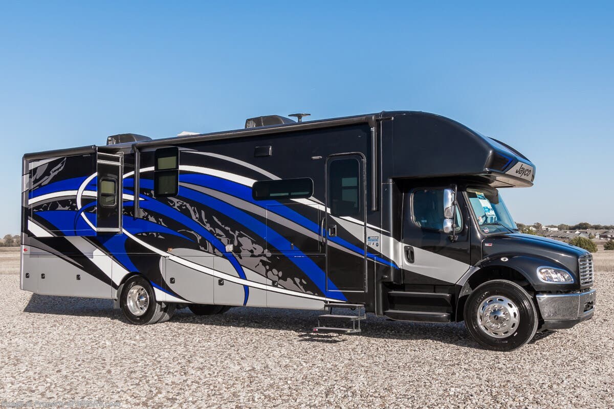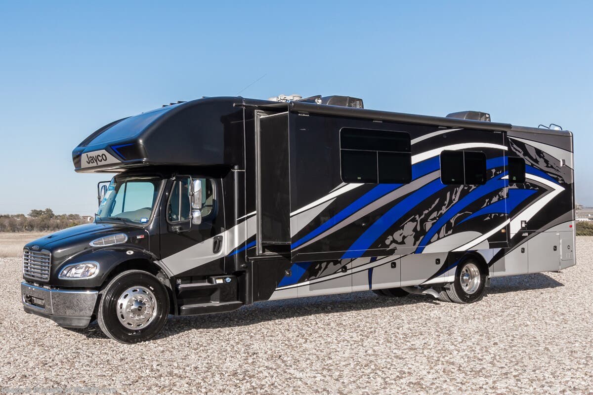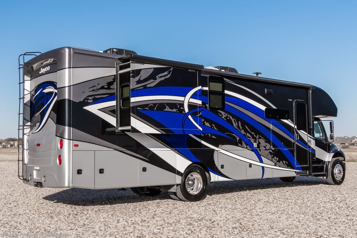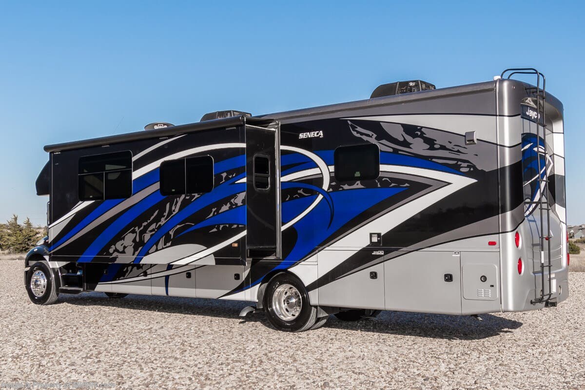 Used Jayco RV for sale – 2021 Jayco Seneca 37K is approximately 39’ 4” in length with 10,156 Miles, 2 slides and features aluminum wheels, full body paint, 3 camera system, dual A/C's, Onan 8KW diesel generator, Cummins 6.7L diesel engine, Freightliner chassis, tilt steering wheel, secondary exhaust brake, driver door, power windows, water manifold, patio awning, pass through storage, LED running lights, black tank flush, water filtration system, power electrical reel, exterior shower, exterior TV, clear paint mask, fiberglass roof, inverter, air ride, leather seating, washer/dryer, 7 foot ceiling, dual pane windows, fireplace, multi-plex control panel, hardwood cabinets, convection microwave, residential refrigerator with ice maker, 3 burner gas range, cab over loft, king bed, bath and a half and much more. For additional details on this unit and our entire inventory including brochures, window sticker, videos, photos, reviews & testimonials as well as additional information about Motor Home Specialist and our manufacturers please visit us at or call 800-335-6054 for our Texas location or 334-288-0331 for our Alabama location. At Motor Home Specialist, we DO NOT charge any prep or orientation fees like you will find at other dealerships. Read Thousands upon Thousands of 5-Star Reviews at and See What They Had to Say About Their Experience at Motor Home Specialist. No Slide Motorized Unit