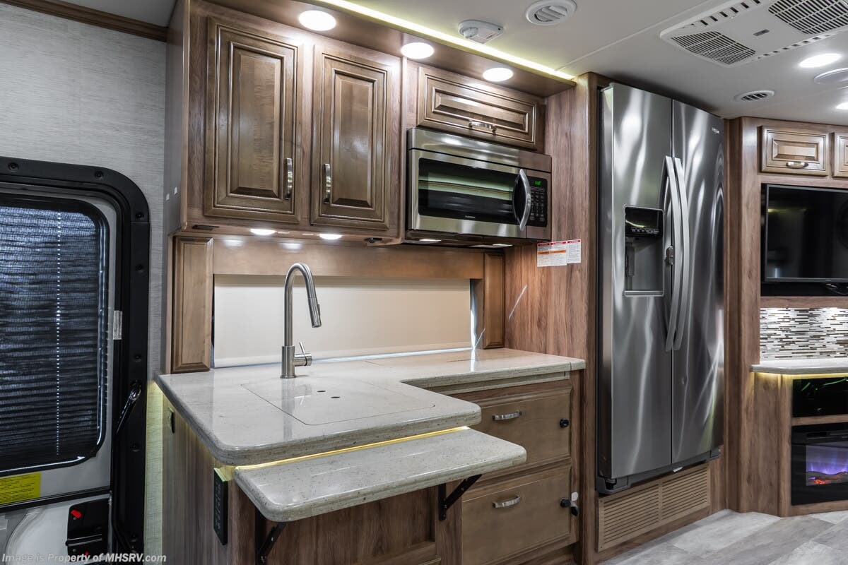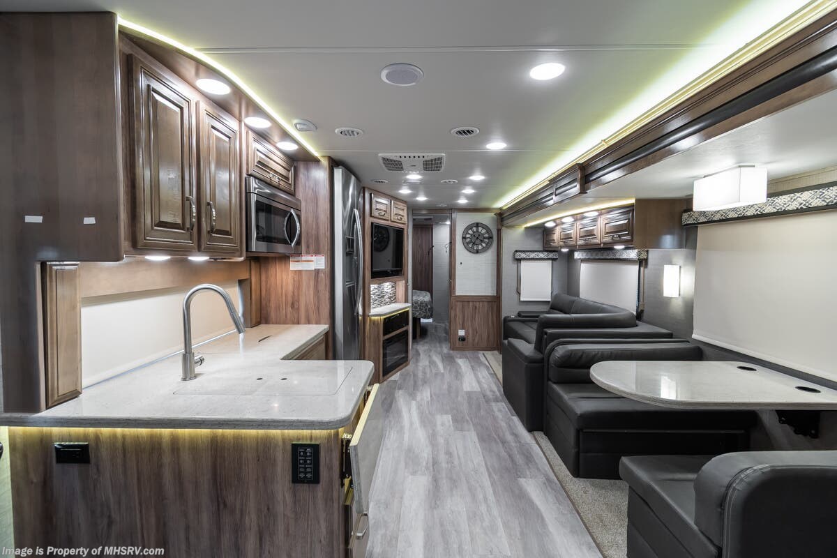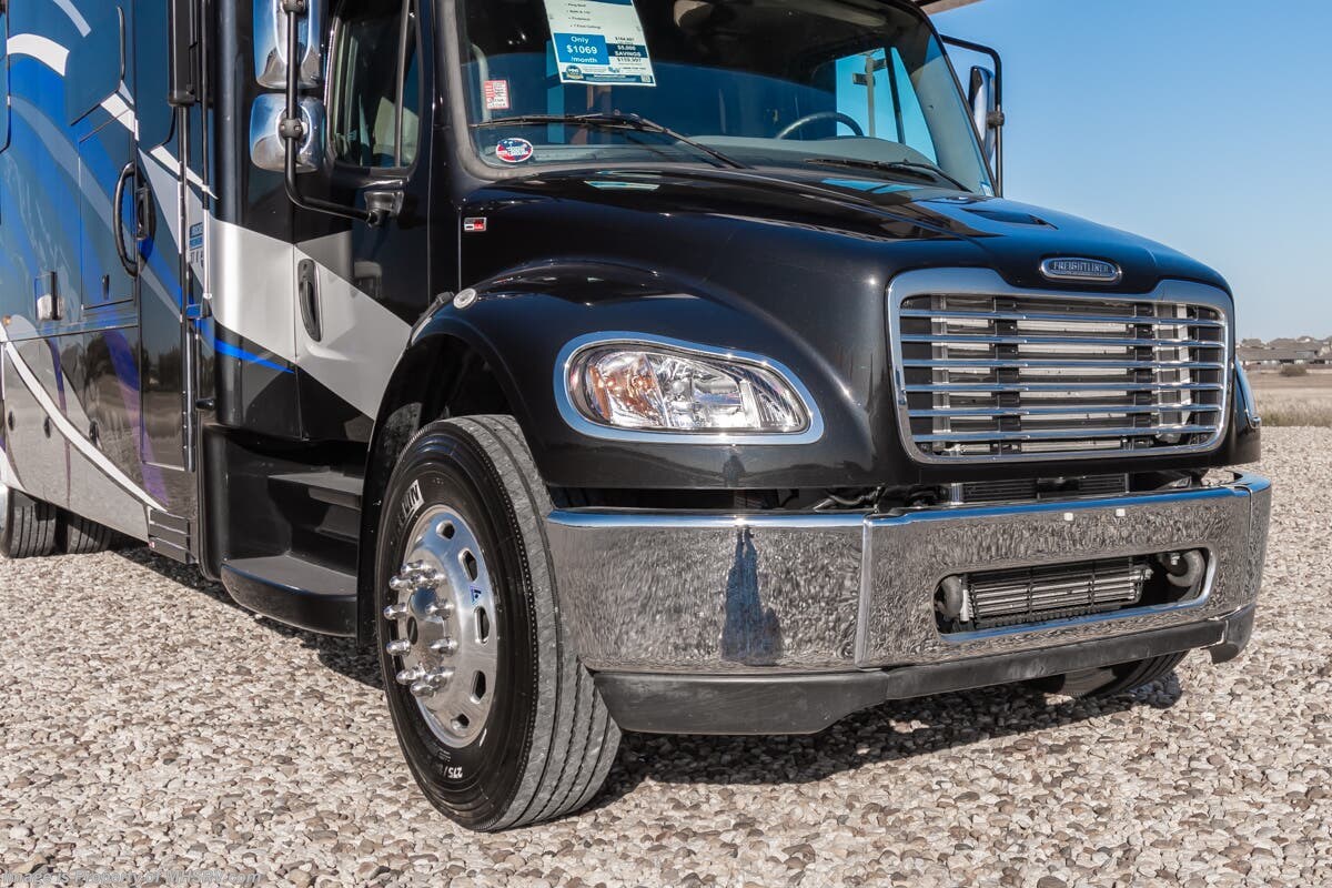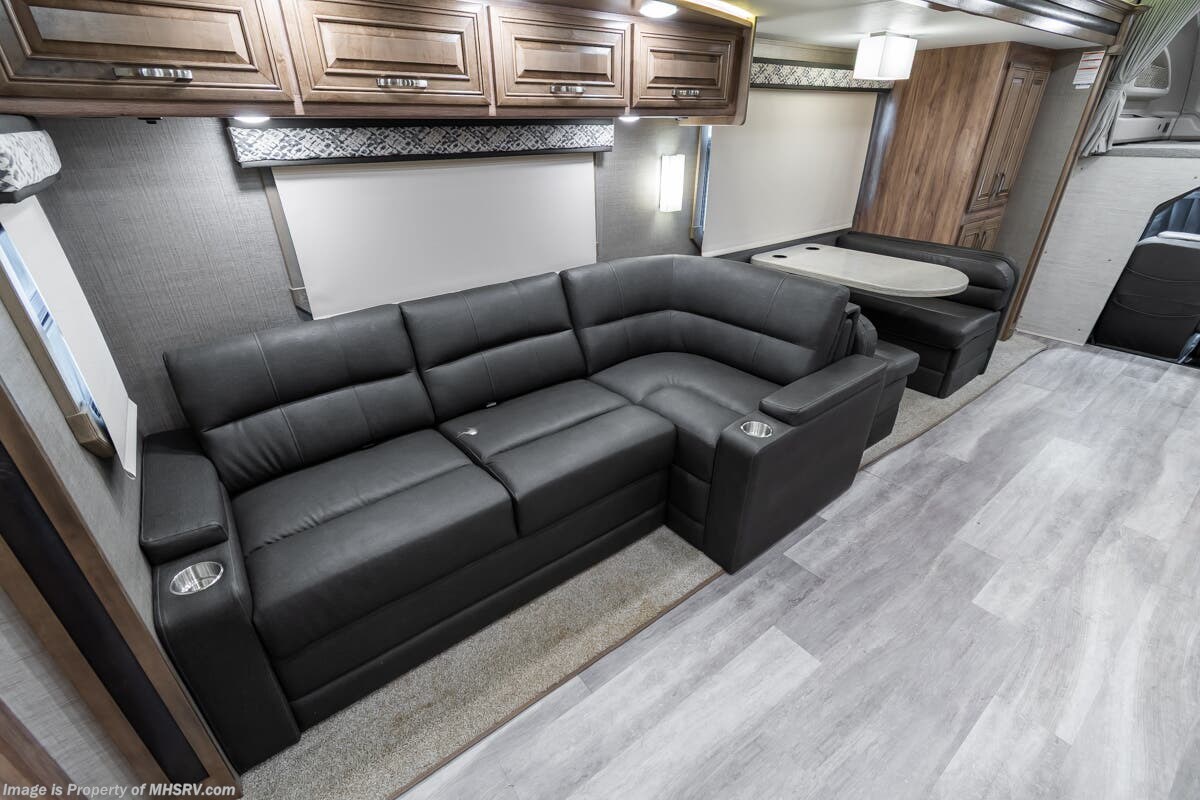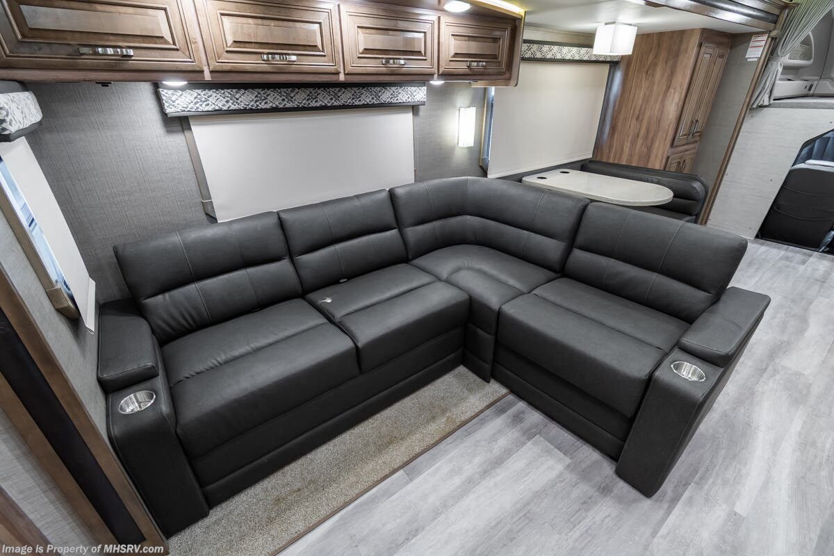 Used Jayco RV for sale – 2021 Jayco Seneca 37K is approximately 39’ 4” in length with 10,156 Miles, 2 slides and features aluminum wheels, full body paint, 3 camera system, dual A/C's, Onan 8KW diesel generator, Cummins 6.7L diesel engine, Freightliner chassis, tilt steering wheel, secondary exhaust brake, driver door, power windows, water manifold, patio awning, pass through storage, LED running lights, black tank flush, water filtration system, power electrical reel, exterior shower, exterior TV, clear paint mask, fiberglass roof, inverter, air ride, leather seating, washer/dryer, 7 foot ceiling, dual pane windows, fireplace, multi-plex control panel, hardwood cabinets, convection microwave, residential refrigerator with ice maker, 3 burner gas range, cab over loft, king bed, bath and a half and much more. For additional details on this unit and our entire inventory including brochures, window sticker, videos, photos, reviews & testimonials as well as additional information about Motor Home Specialist and our manufacturers please visit us at or call 800-335-6054 for our Texas location or 334-288-0331 for our Alabama location. At Motor Home Specialist, we DO NOT charge any prep or orientation fees like you will find at other dealerships. Read Thousands upon Thousands of 5-Star Reviews at and See What They Had to Say About Their Experience at Motor Home Specialist. No Slide Motorized Unit