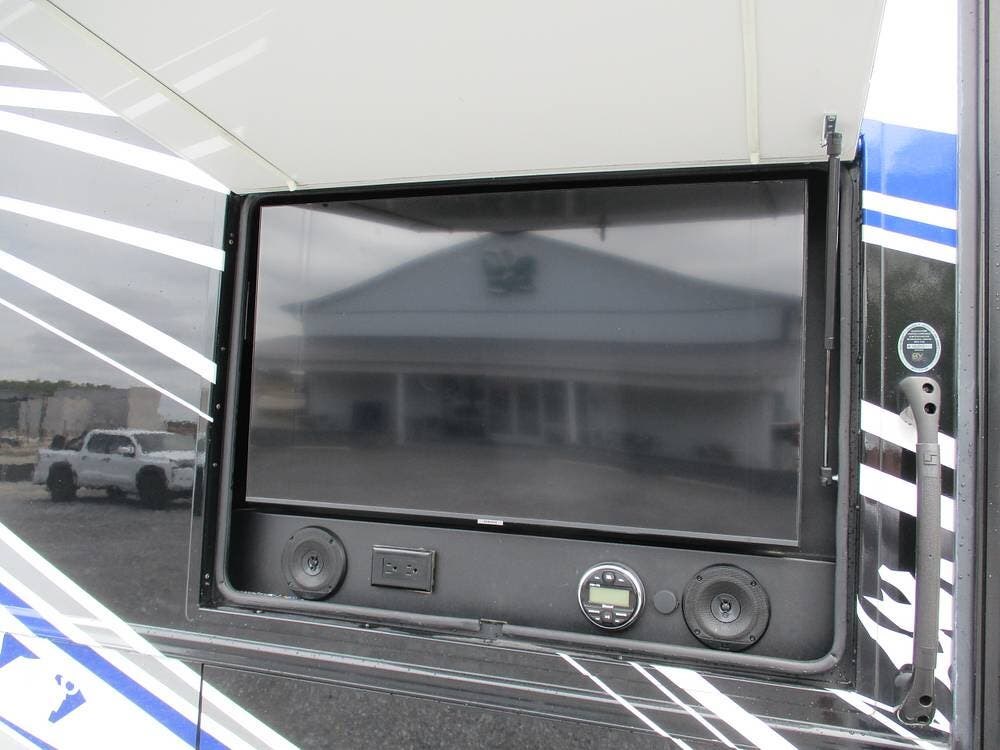 Outside, the Seneca Prestige features a Girard power awning, an exterior entertainment system with a TV and stereo, and ample storage compartments for all your gear.