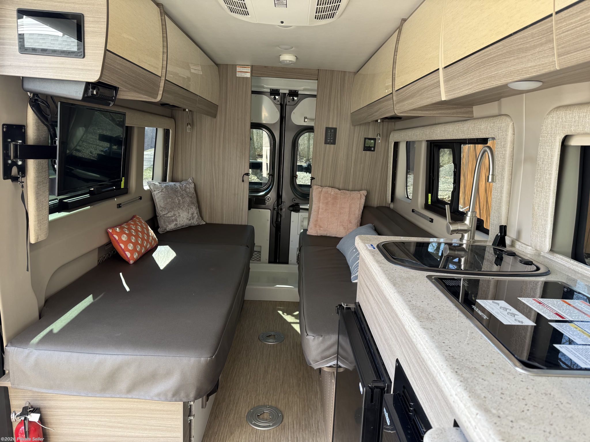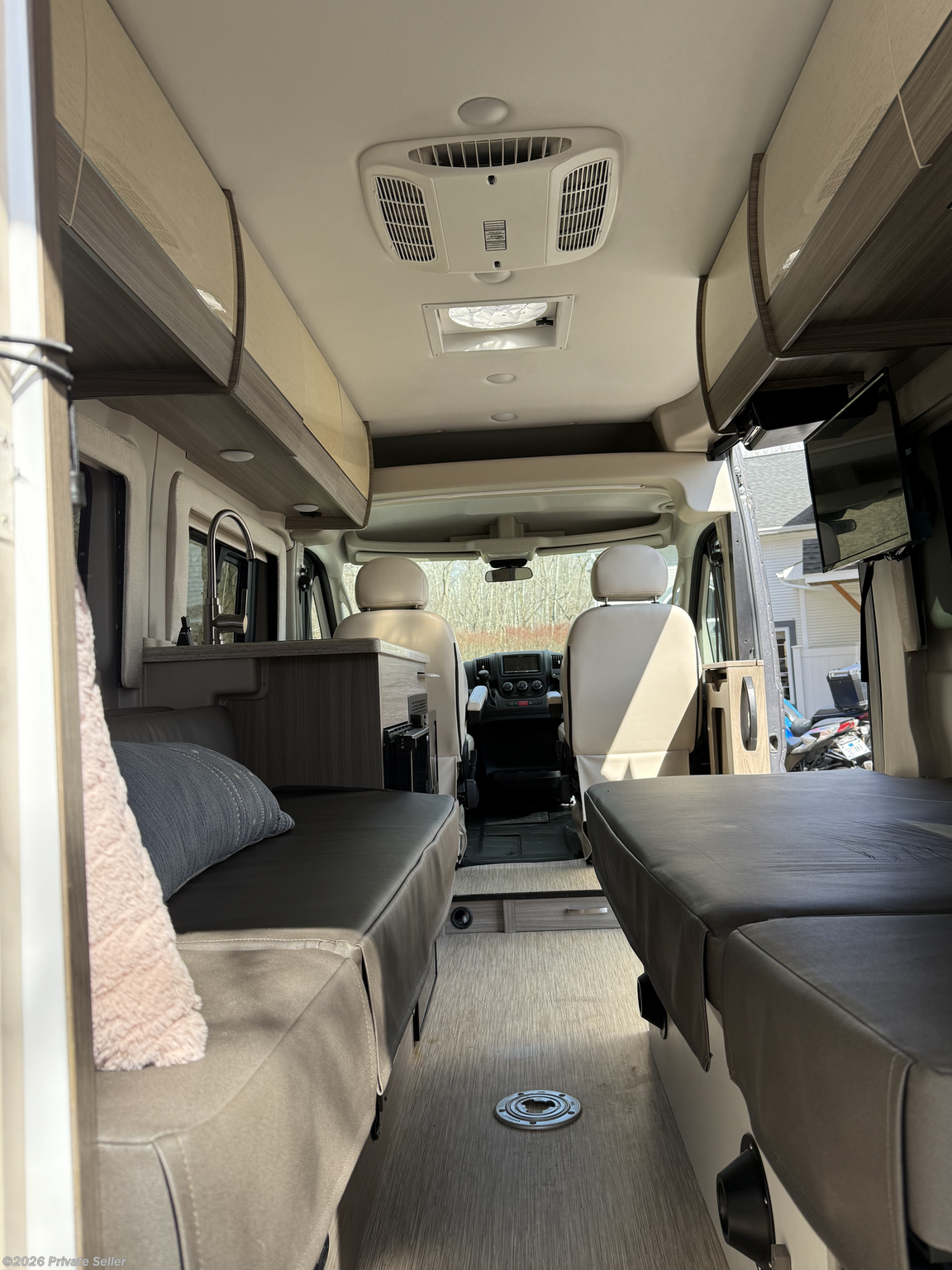 Beautiful, barely used van. Two twin beds that convert to a queen. Dining pop-up table, full kitchen, full bath, desk, awning, etc. This has it all!