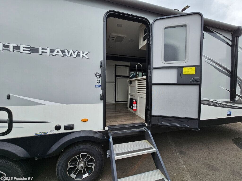 Introducing the remarkable 2021 Jayco White Hawk 30FLS, an exceptional travel trailer designed for unforgettable adventures on the road. With a spacious length of 37.07 feet, this RV has been meticulously crafted to provide a comfortable living space for families or groups, accommodating up to six guests. It is in used condition, offering excellent value for those looking to explore the great outdoors without compromising on comfort. The White Hawk boasts two slide-outs that expand the interior space, enhancing the living area for relaxation and social gatherings. This travel trailer features a single awning that provides shade and comfort while you enjoy the outdoors. Equipped with front manual and rear manual leveling jacks, setting up camp is a breeze. The dry weight of 7740.21 pounds gives it a robust build, while its GVWR of 9500.16 pounds offers stability on the road. With a hitch weight of 1020.08 pounds, it promises a reliable towing experience for your vehicle. The thoughtful design ensures flexibility and convenience, making it an ideal choice for RV enthusiasts. Experience the great outdoors with the confidence and luxury this RV provides. As a family-owned, award-winning local RV dealer with multiple locations in Sumner, Everett, Kent, and Mt. Vernon Washington, Poulsbo RV is here to help you find the perfect RV. Stock#: CCX5104, VIN: 1UJBJ0BT4M14B0082.