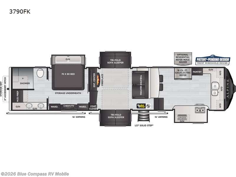 Keystone RV Alpine fifth wheel 3790FK highlights: