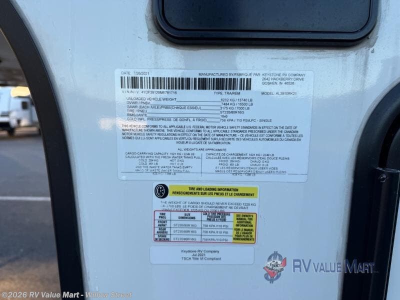 Request More Info on this 2021 Keystone Alpine 3910RK Offered for sale by RV Value Mart - Willow Street