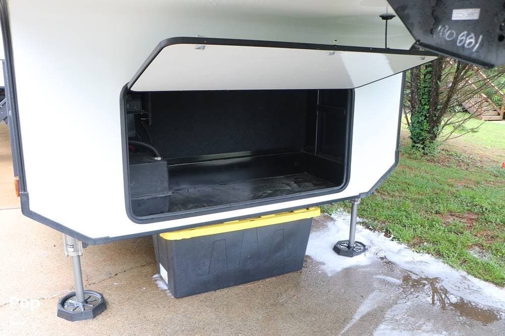 Outside, the two power awnings allow you to take the fun outdoors, and there is lots of exterior storage space. Plus, features like a power cord take-up reel, a full RV Cover, Tire covers, an upgraded BAL Hide-A-Spare Tire Carrier, and more.