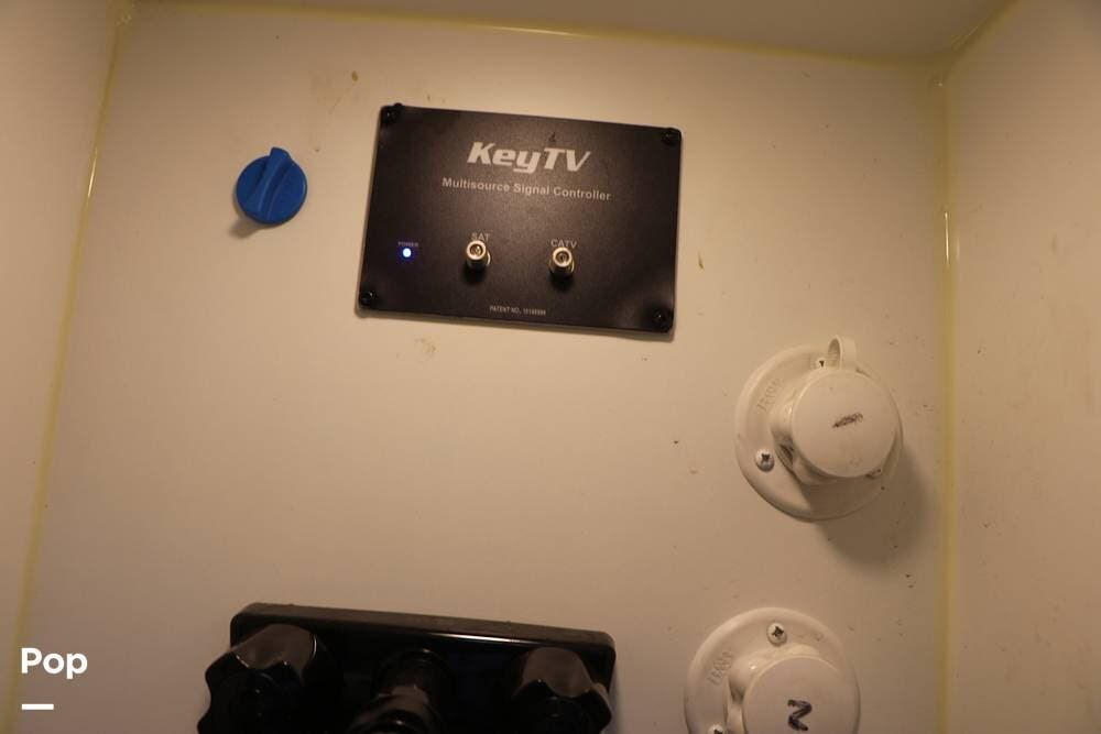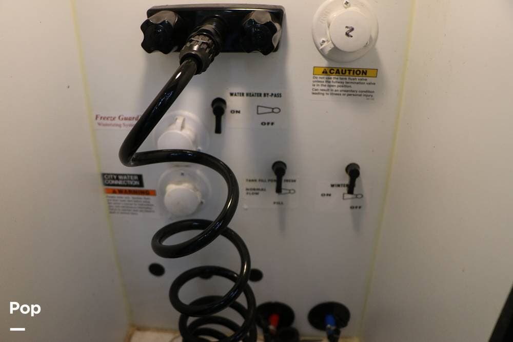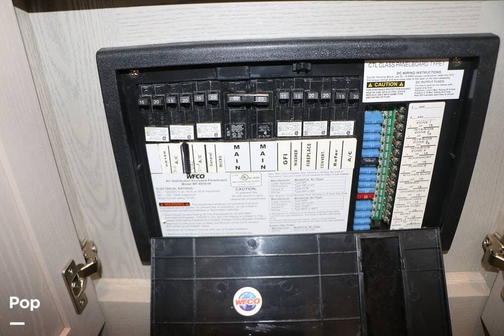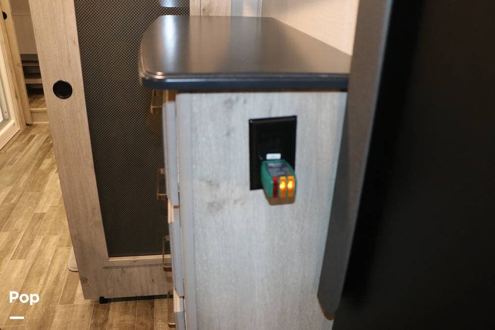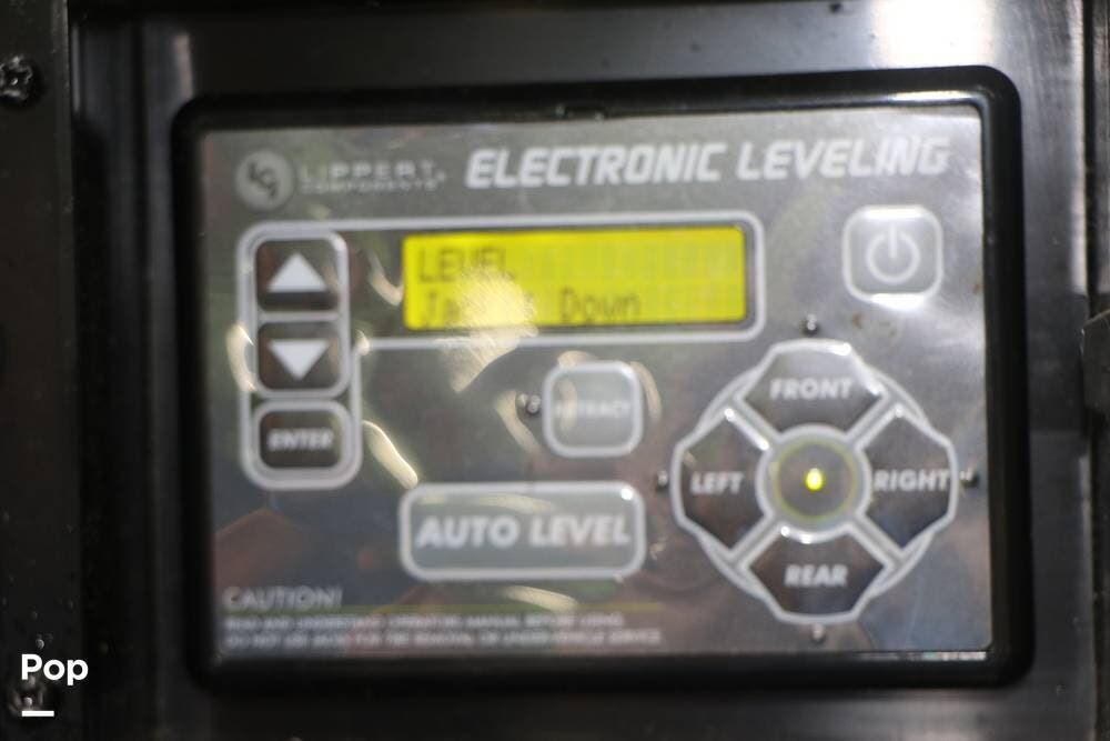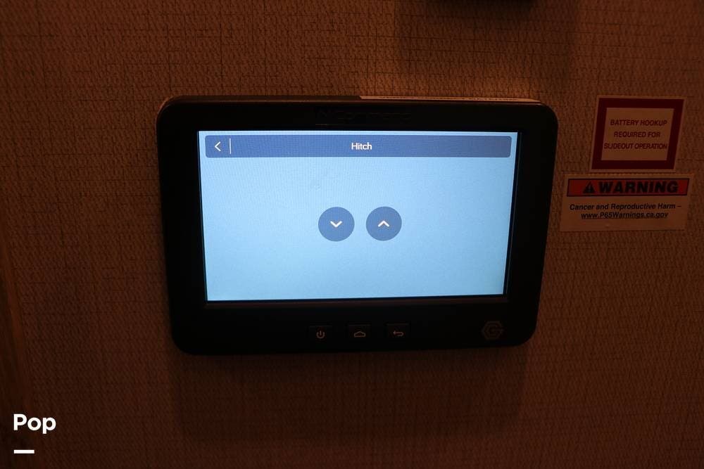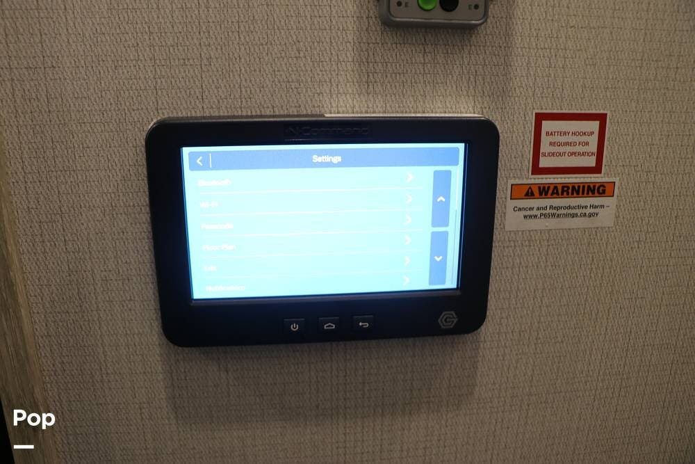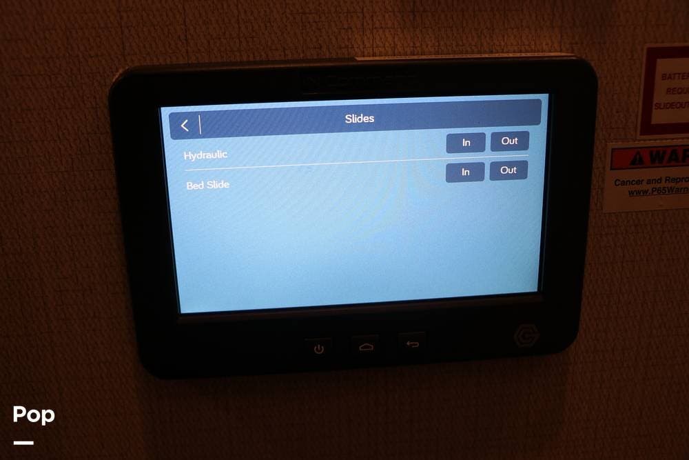Just up the steps in the hallway is the touch-screen control panel, which allows you to control all aspects of the RV--lighting, heating/cooling, slides, awnings, leveling system, and more. The unit is equipped with a tankless water heater, and the control panel is next to the controls for the MAX AIR Fans and the LPG Tank Level indicator. All of the controls are in one central location.