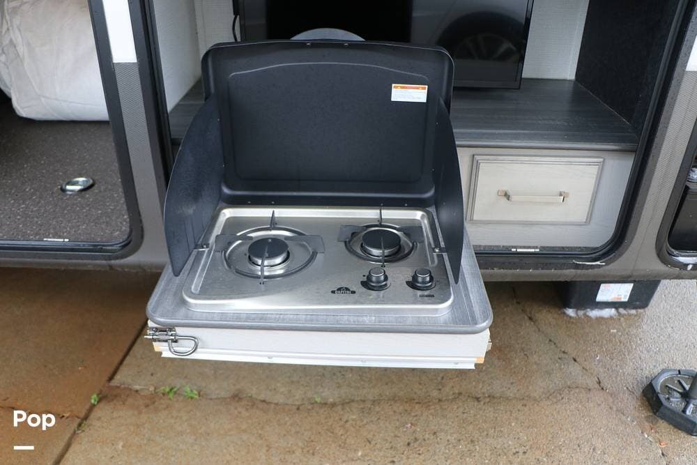 The second exterior entry door is off the kitchen, making this a great floor plan for entertaining, tailgating at your favorite team's events, or just enjoying your favorite campsite to the fullest.