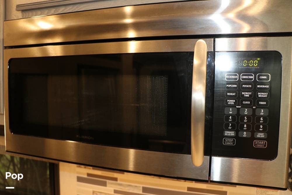The Galley is fully equipped with residential-grade appliances and lots of cabinet space, including a full-height pantry. The Stainless Steel refrigerator has plenty of room for drinks and food. The microwave convection oven is great for quick meals on the go or more serious cooking, and there is a griddle cooktop and conventional gas oven below, as well as a double stainless steel kitchen sink with matching covers. The solid surface countertops are lovely and are continued throughout the entire unit. The dining table expands with a pull-out shelf and accommodates four easily.