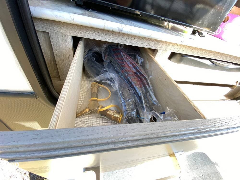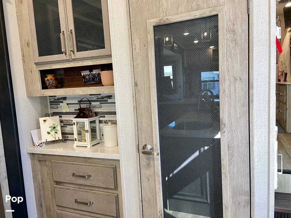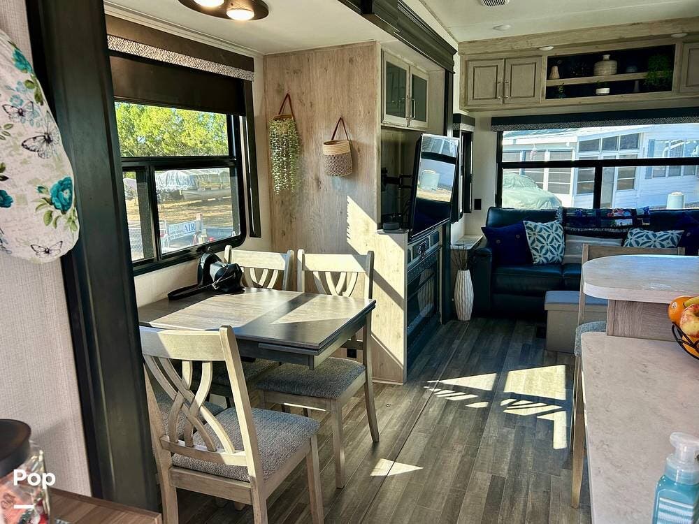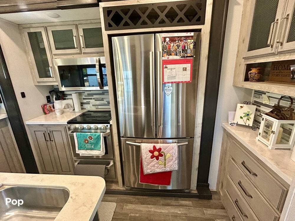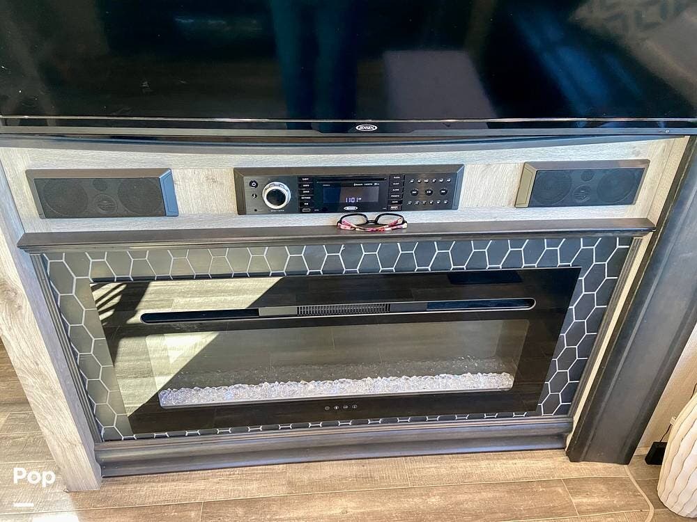 On the exterior, features like Road Armor suspension, Max Turn technology, and Hitch Vision simplify towing and improve handling. The outdoor kitchen and pass-through storage are added bonus features for your convenience and enjoyment!