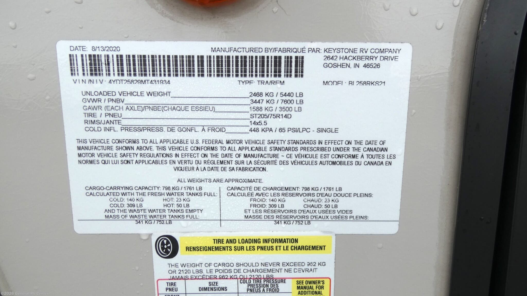 2021 Keystone Bullet 258RKS