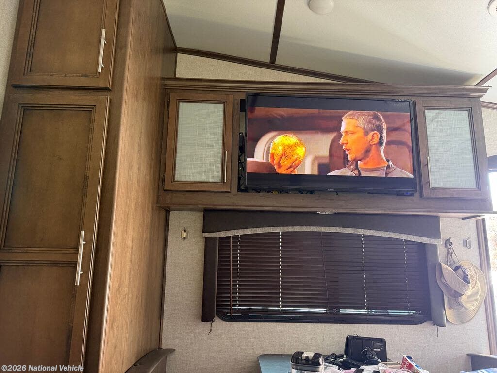 With a dry weight of approximately 7,116 lbs, hitch weight of 1,335 lbs, and nearly 2,884 lbs of cargo capacity, this fifth wheel is designed to be half-ton towable while still offering big-coach features. Tank capacities are impressive as well, with 60 gallons fresh water, 60 gray, and 30 black, along with dual propane tanks and a 6-gallon water heater.