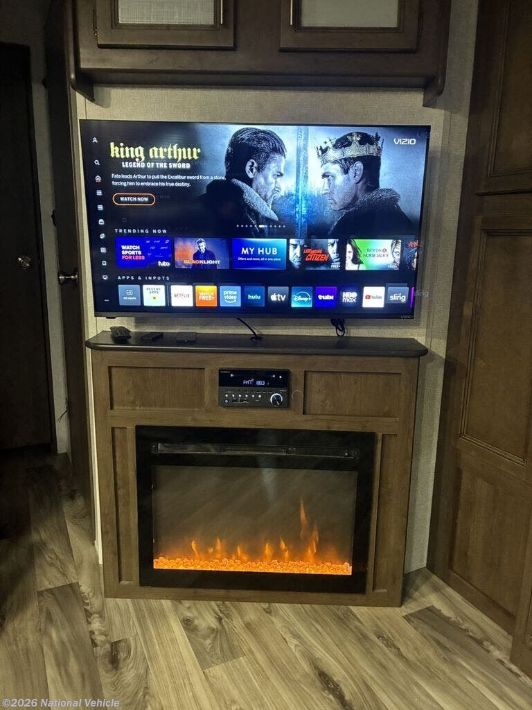 Entertainment center with fireplace and TV