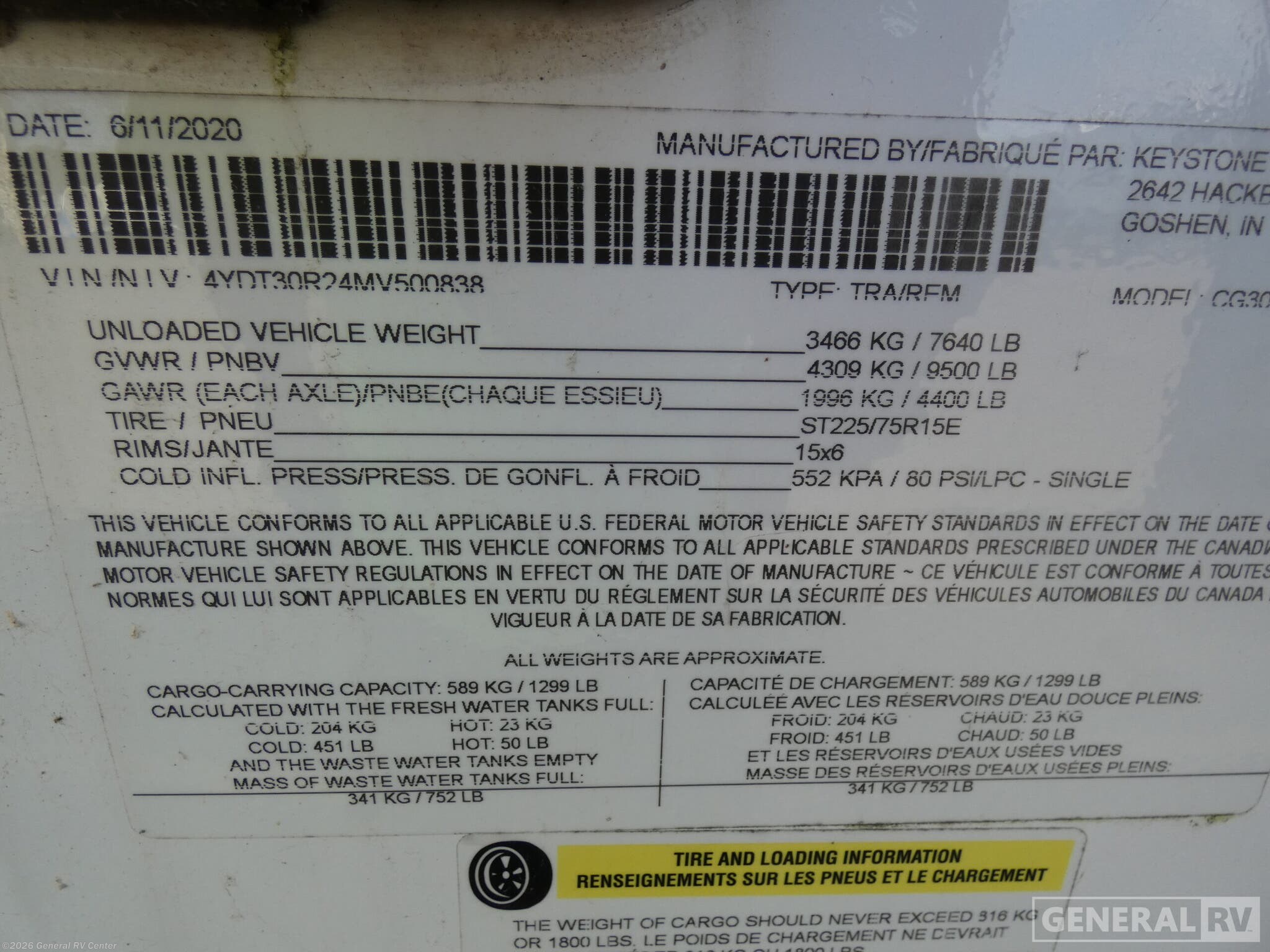 Experience the perfect blend of comfort and adventure with the 2021 Keystone Cougar Half-Ton 30RKD. This beautifully designed RV offers a spacious and inviting layout, ideal for families or couples seeking a home away from home. At the heart of this model is a well-appointed rear kitchen, complete with a three-burner cooktop and an 8 cu ft refrigerator. The expansive living area features a sofa and an LED HDTV, making it perfect for cozy movie nights or entertaining guests. Retreat to the master bedroom, where a luxurious king-size bed awaits, promising restful nights after a day of exploration. The thoughtful design includes ample storage options, including a dresser and overhead cabinets, ensuring you have all the space you need for your travel essentials. Enjoy the convenience of a radius shower in the bathroom, providing a touch of home-like comfort. For more information or to see this model in person, visit your nearest General RV dealership. Let your adventures begin with the Keystone Cougar Half-Ton 30RKD!