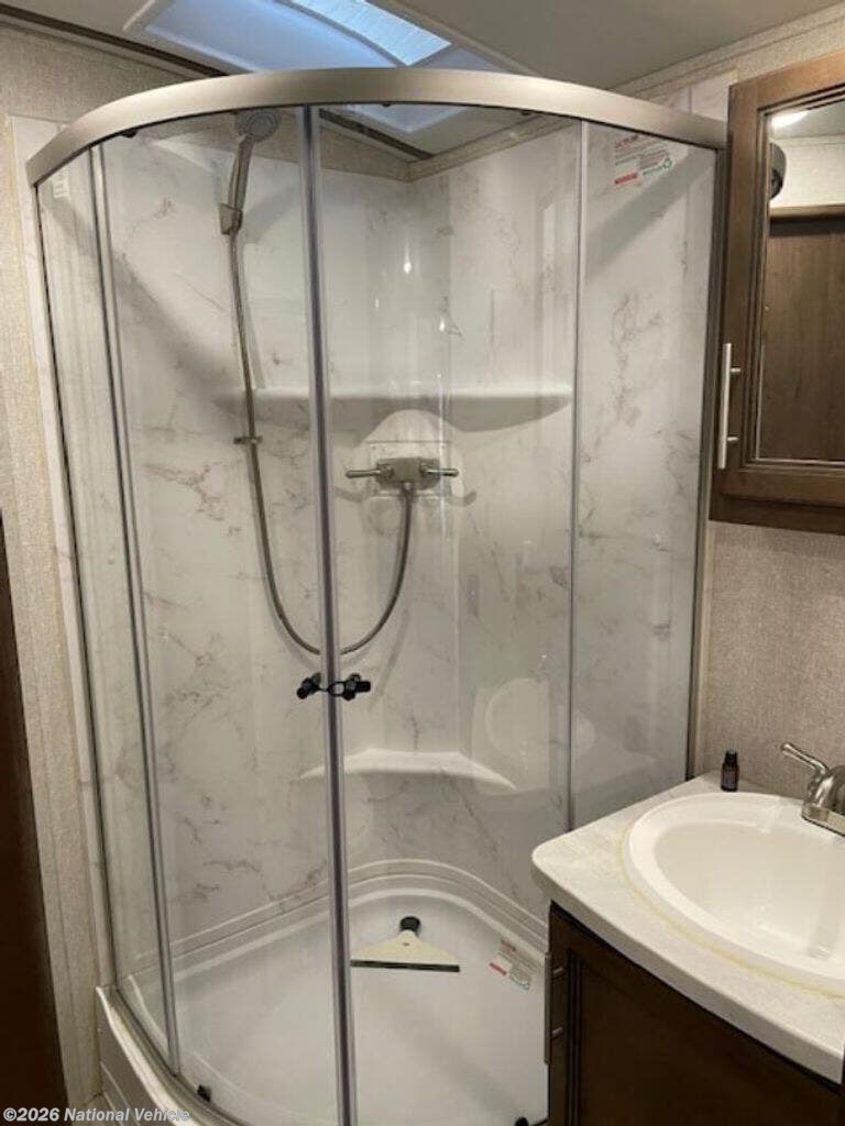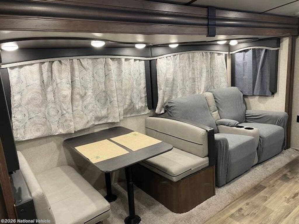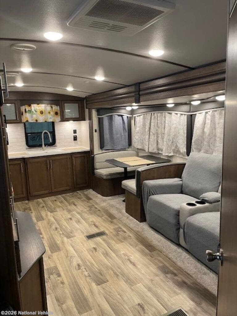 Step inside and you?ll immediately notice the open-concept living area created by a slide-out, giving the coach a wide, inviting feel. Relax on the tri-fold sofa while enjoying the entertainment center, or gather around the dinette for meals, work, or game nights. Large panoramic windows bring in natural light, creating a bright and comfortable atmosphere throughout.