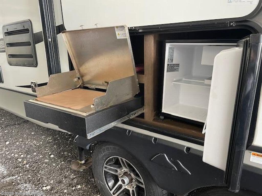 On the exterior, enjoy features like the power awning, pass-through storage, and an outdoor kitchen-perfect for maximizing your campsite experience.