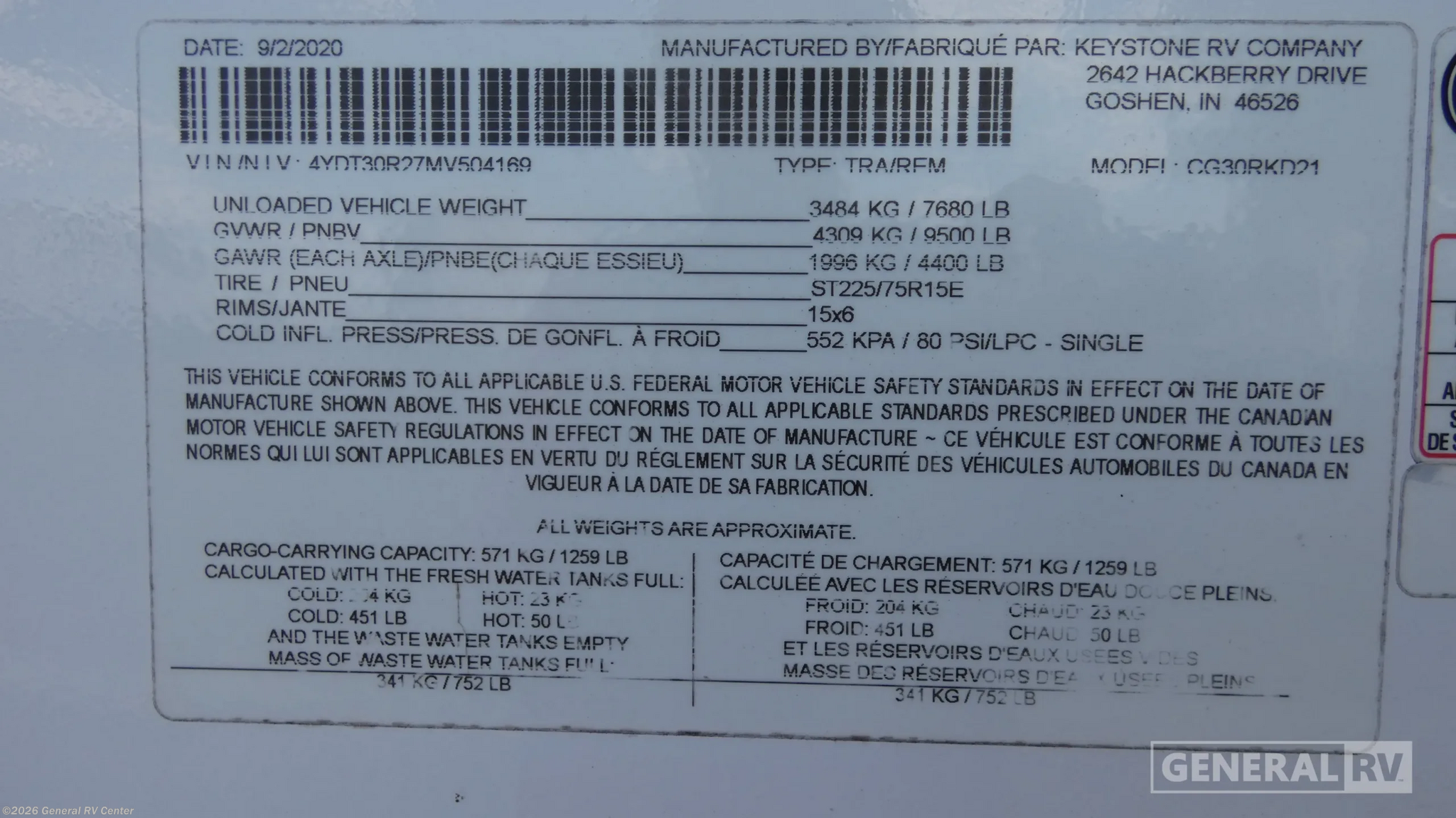 - VIN4YDT30R27MV504169
