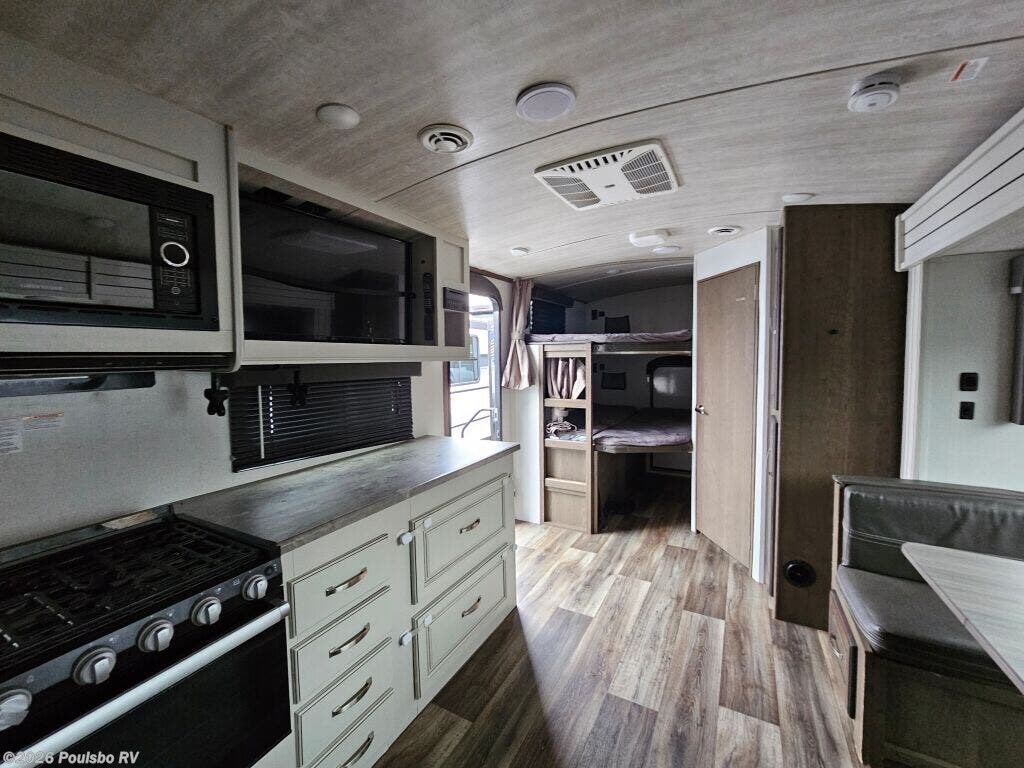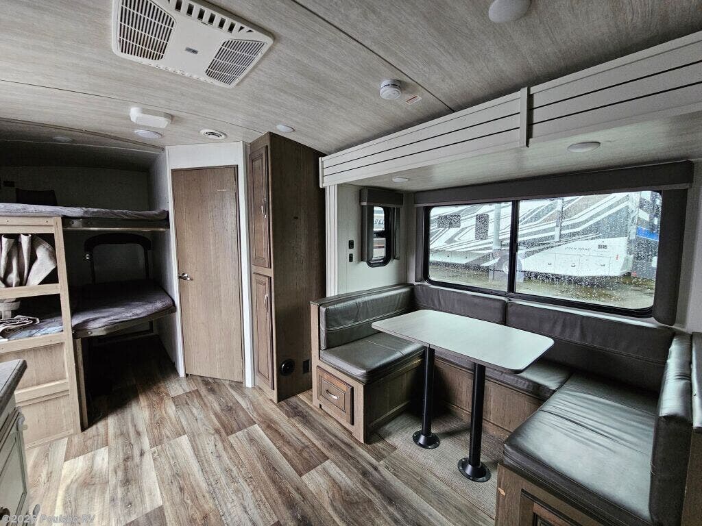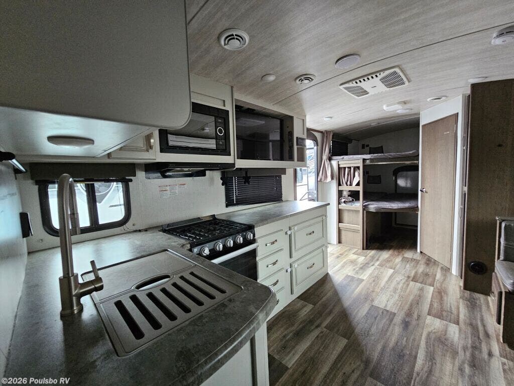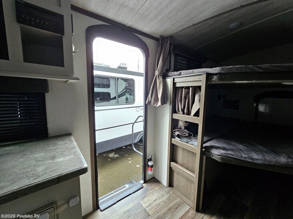 The 2021 Keystone Cougar Half-Ton 25DBSWE presents a remarkable opportunity to enjoy the great outdoors with all the comforts of home. This used travel trailer measures just under 30 feet in length, making it manageable for many half-ton trucks, while still providing plenty of space inside for family and friends. Its unique bunkhouse design allows for generous sleeping accommodations for up to eight people, making it an excellent choice for larger families or groups who want to travel together without compromising on comfort. The single slide out enhances the living area, expanding the interior space so everyone can spread out, relax, and enjoy quality time inside. A well-planned layout ensures easy movement throughout the trailer and offers flexible living areas that adapt to different needs whether dining, lounging, or sleeping. One awning provides a shaded outdoor retreat, perfect for relaxing in the fresh air or entertaining guests outside. The Keystone Cougar Half-Ton is built with convenience in mind, equipped with leveling jacks that allow you to quickly stabilize your camper and enjoy a level setup wherever you park. Weighing a dry weight of 6240 pounds and with a hitch weight near 800 pounds, this model strikes a balance between towability and spaciousness that appeals to those who want a comfortable, easy-to-handle travel trailer. This Cougar gives you the freedom to explore new places while always having a cozy, welcoming space to return to. As a family-owned, award-winning local RV dealer with multiple locations in Sumner, Everett, Kent, and Mt Vernon Washington, Poulsbo RV is here to help you find the perfect RV. Stock#: CCX5333, VIN: 4YDT25D21MC506700.