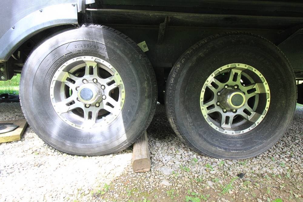 The twin side patio awnings create even more outdoor space, and the front area has an outdoor kitchen and TV!