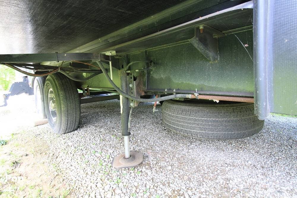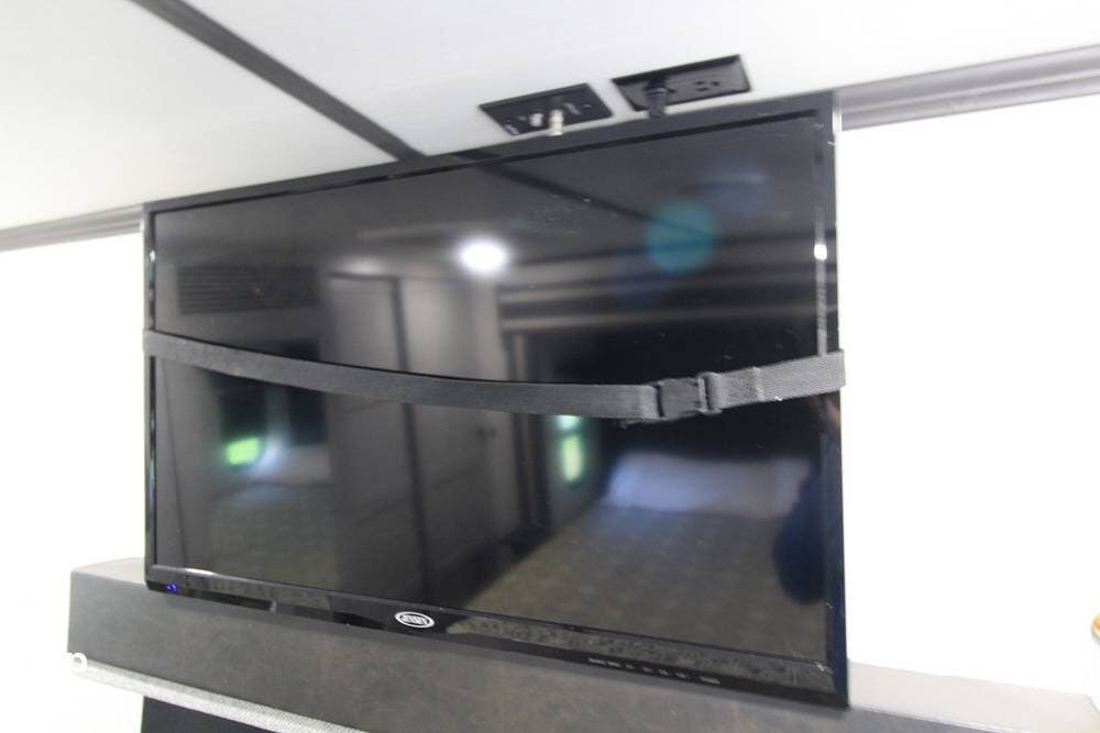 Featuring an 11-ft. garage, there is plenty of space to bring your toys. Once you've set up camp, the space converts to a rec room with twin powered queen bunks. There is a separate stereo system in addition to the 3-season wall system!