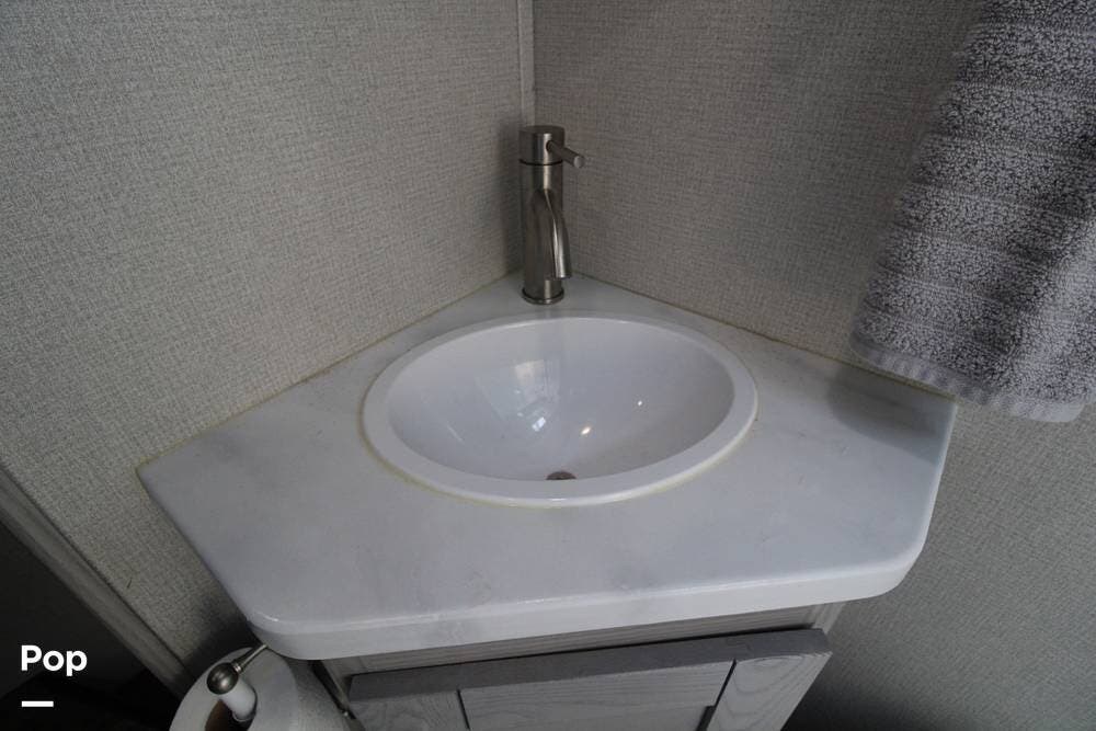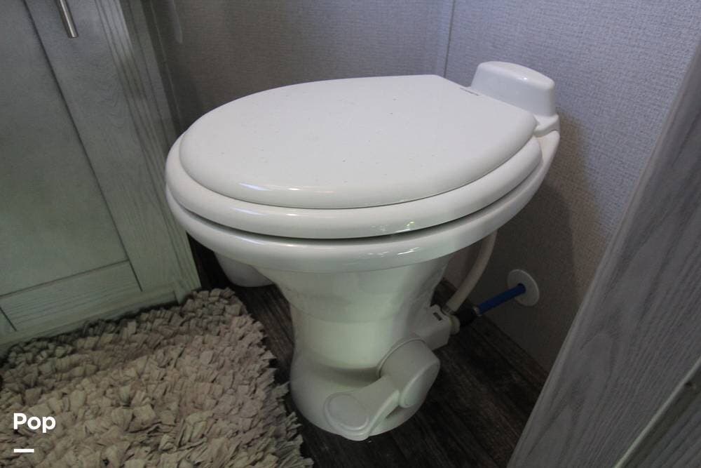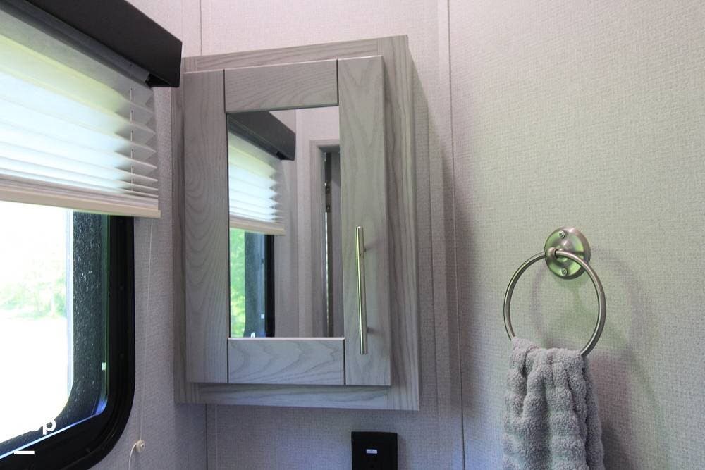 In traditional fifth-wheel fashion, there is a full bath and an owner's suite upstairs!