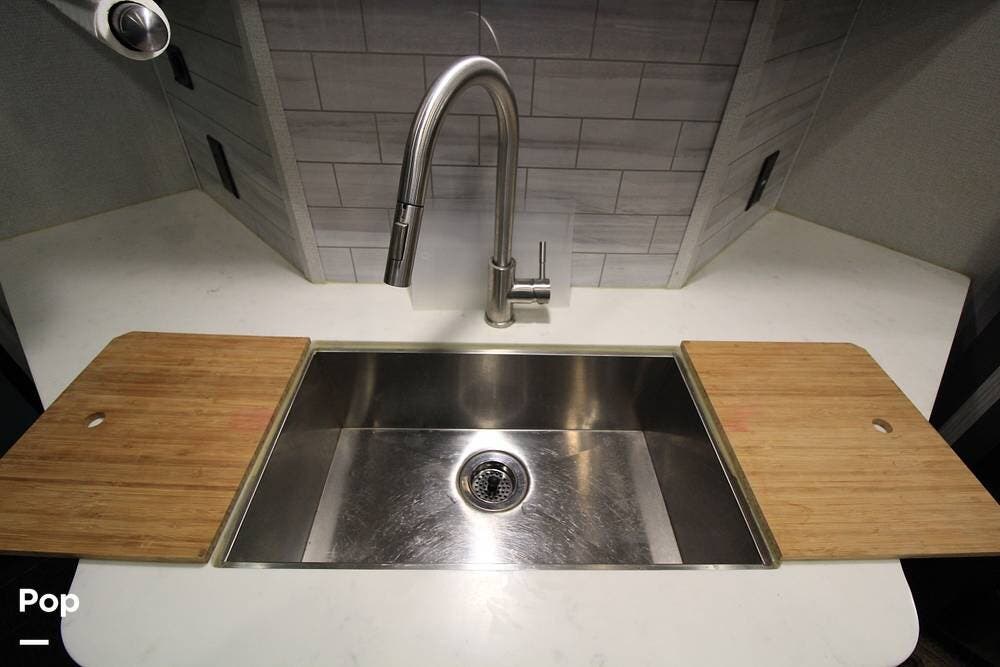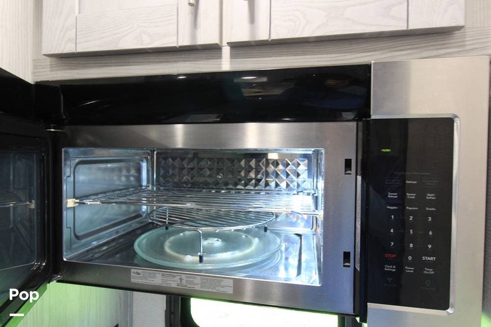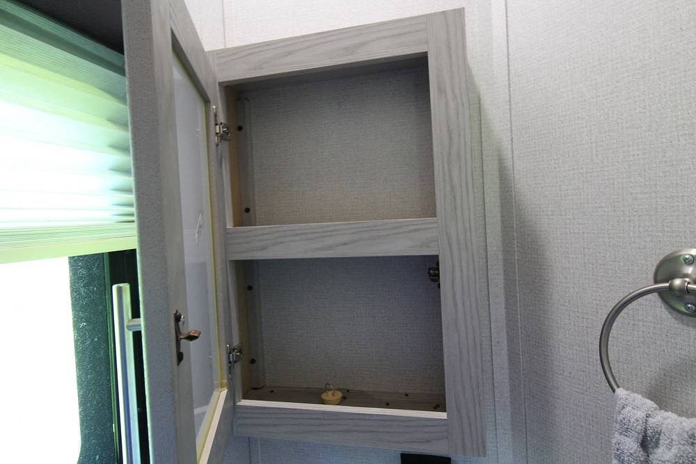 If that's not enough, the light-colored interior creates an open feel, with the main living area mid-coach and the kitchen to the rear towards the garage.