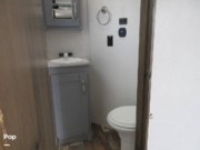 This FUZION has a full-size bath with lots of closet storage in the front of the RV, and a half bath in the garage.