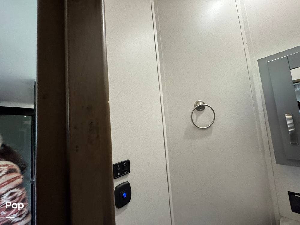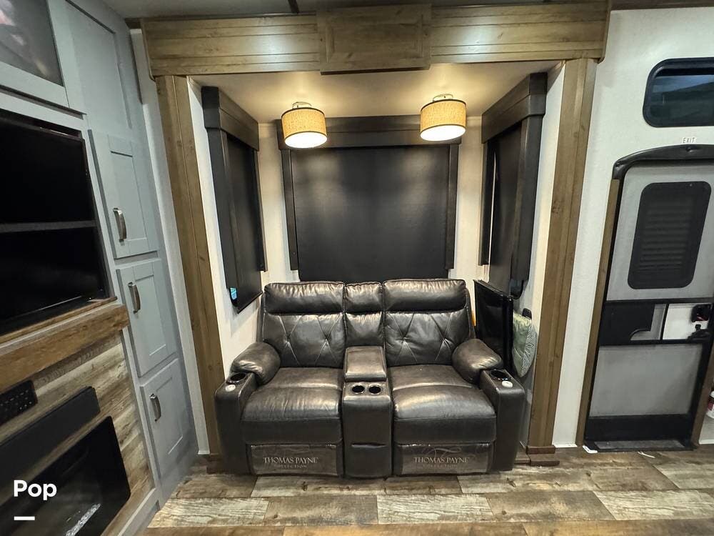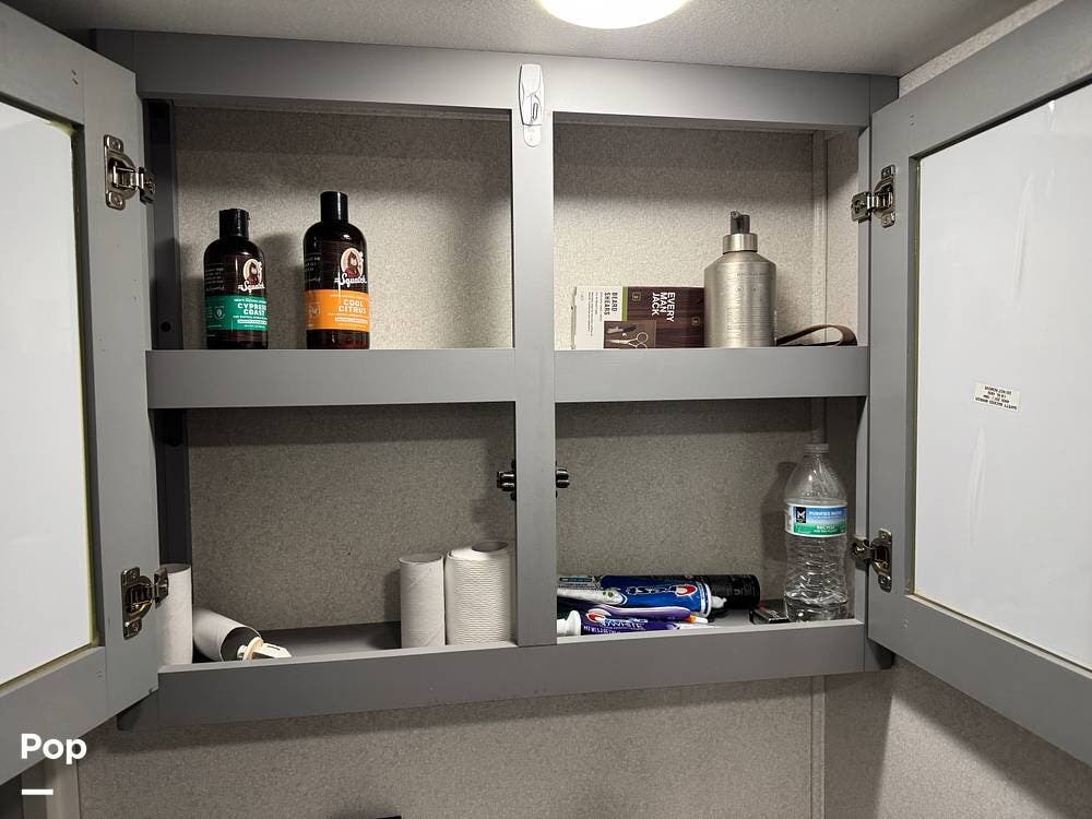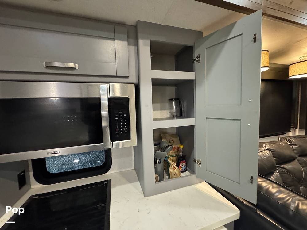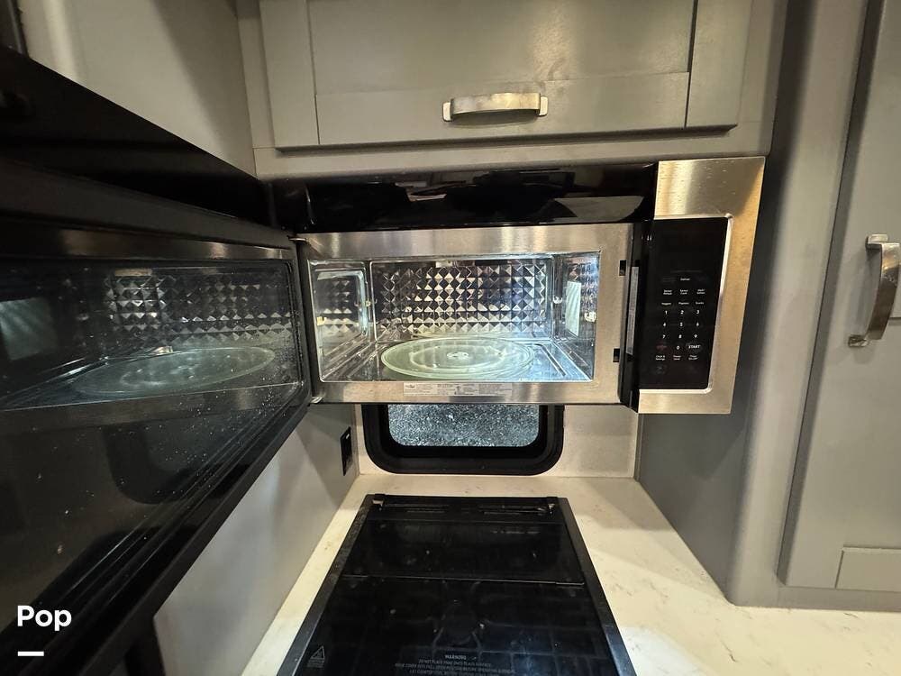 The current owners have truly enjoyed the spacious living area, noting how easy it is to entertain friends and family with features like the 50" TV, electric fireplace, and heated theater seating, which really make this coach feel like home.