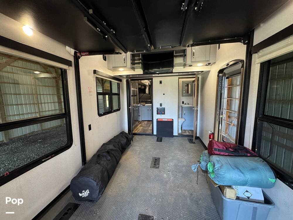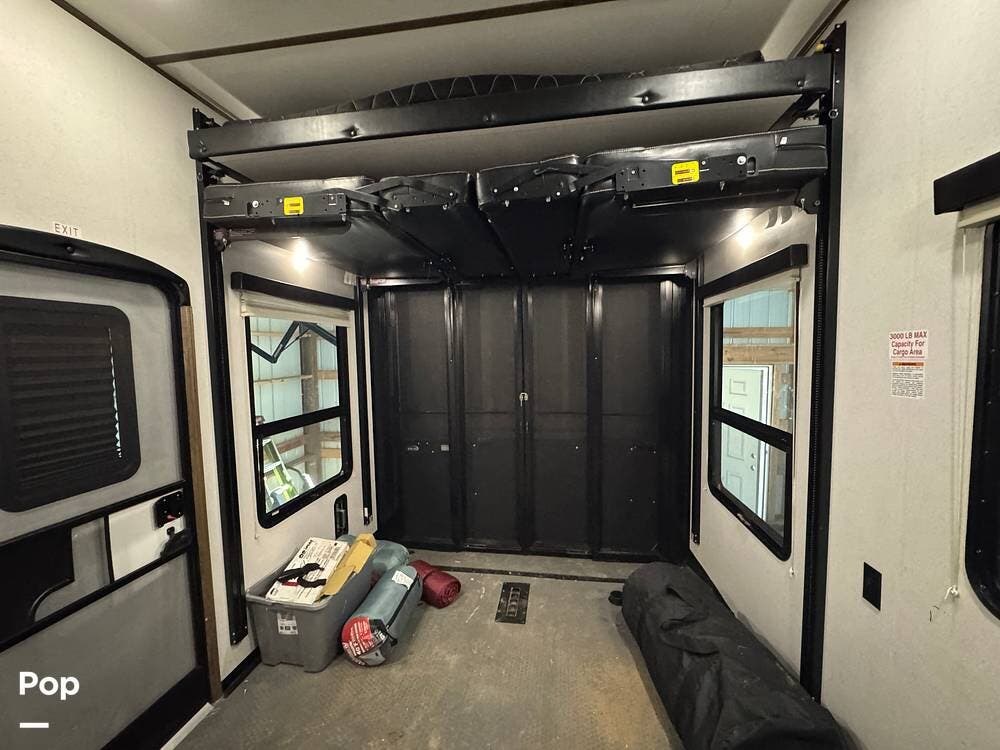 The garage space is extremely versatile, offering more than just toy storage. The closed-loop exhaust air system is a thoughtful feature that helps maintain a cleaner, safer environment, whether you're hauling equipment or using the garage as additional living or sleeping space.