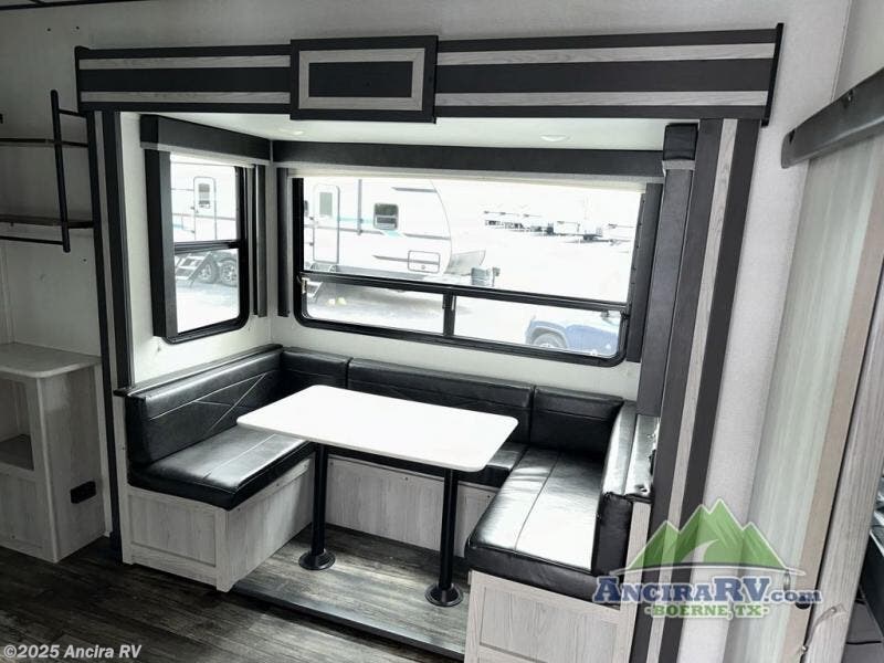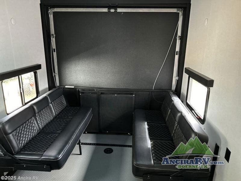 Keystone specifically keeps you, the customer, in mind as they construct and build each Fuzion Impact Edition toy hauler. The 100" wide body and 5k interlock system with frame-welded tie-downs ensure convenient and secure shipment of your favorite ride-on toys. You will appreciate the Keystone Exclusives, such as the Tru-fit slide construction, the in-floor heating ducts, 4G LTE and Wi-Fi prep, plus many more hassle-free features. Each model includes a 30-gal. fuel station with a 12V pump and a static line and the Omni-Chill A/C system, which is the highest-performing energy-efficient system available. Inside, you will love the hardwood cabinetry, pressed countertops in the kitchen, and large tinted safety-glass panoramic windows to let natural light in. These toy haulers also feature plenty of storage space for all your belongings, including under-bed storage and a lighted pass-through compartment!