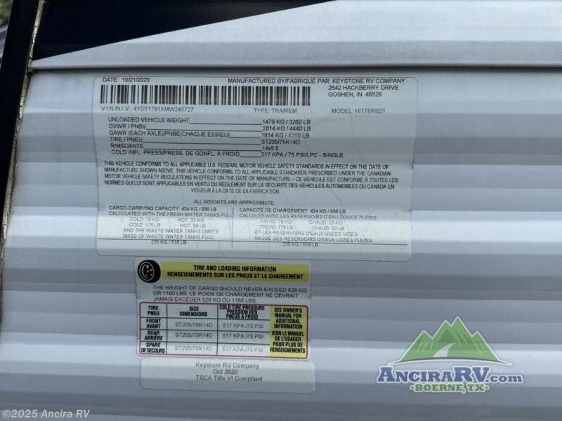 Request More Info on this 2021 Keystone Hideout Single Axle 178RB Offered for sale by Ancira RV