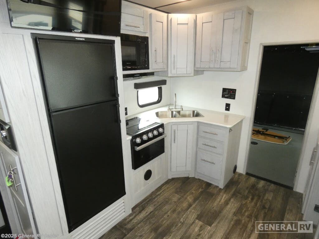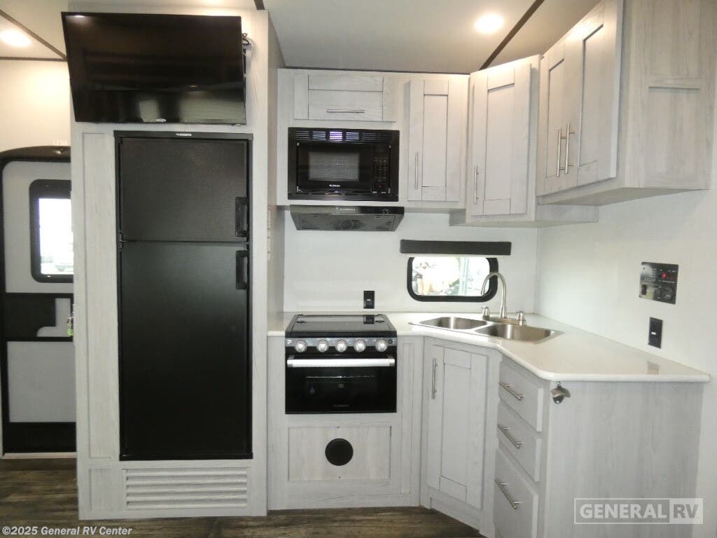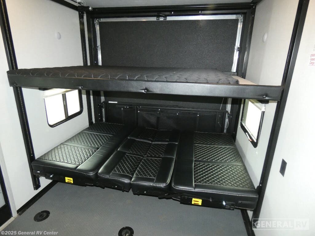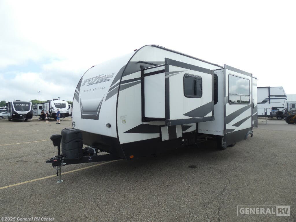 Embark on your next adventure with the 2021 Keystone Fuzion Impact 29V, where comfort meets versatility. This travel trailer offers a spacious 10-foot garage area, perfect for storing your adventure gear or transforming into a dynamic living space with its dual opposing sofas. The center kitchen and living area are designed for both functionality and relaxation, featuring a booth dinette and a mid-size refrigerator to keep your refreshments cool. Whether you're cooking a meal on the three-burner cooktop or unwinding in front of the LED TV, this RV ensures every moment is enjoyable. The front bedroom boasts a 60 x 74 adjustable queen bed, providing a restful retreat after a day of exploration. With the ability to sleep up to eight people, thanks to convertible sleeping options, you can bring the whole family along. The 18-foot powered retractable awning extends your living space outdoors, ideal for enjoying the fresh air and scenic views. With generous tank capacities and ample storage, your journey will be as seamless as it is memorable. For more details, visit your nearest General RV dealership and start planning your next getaway today!