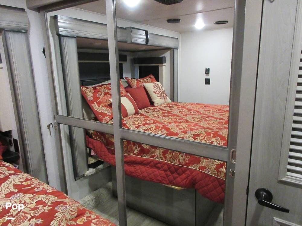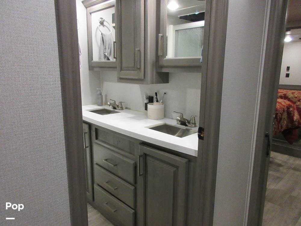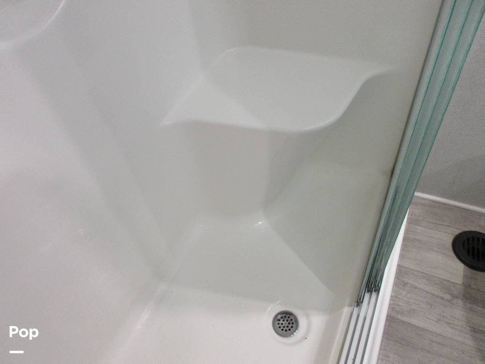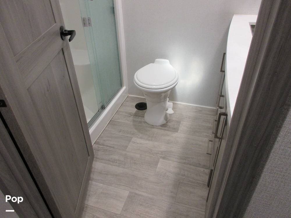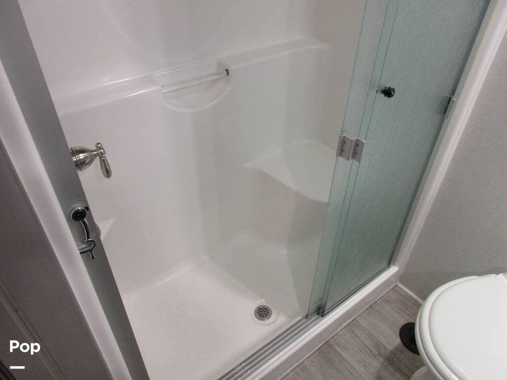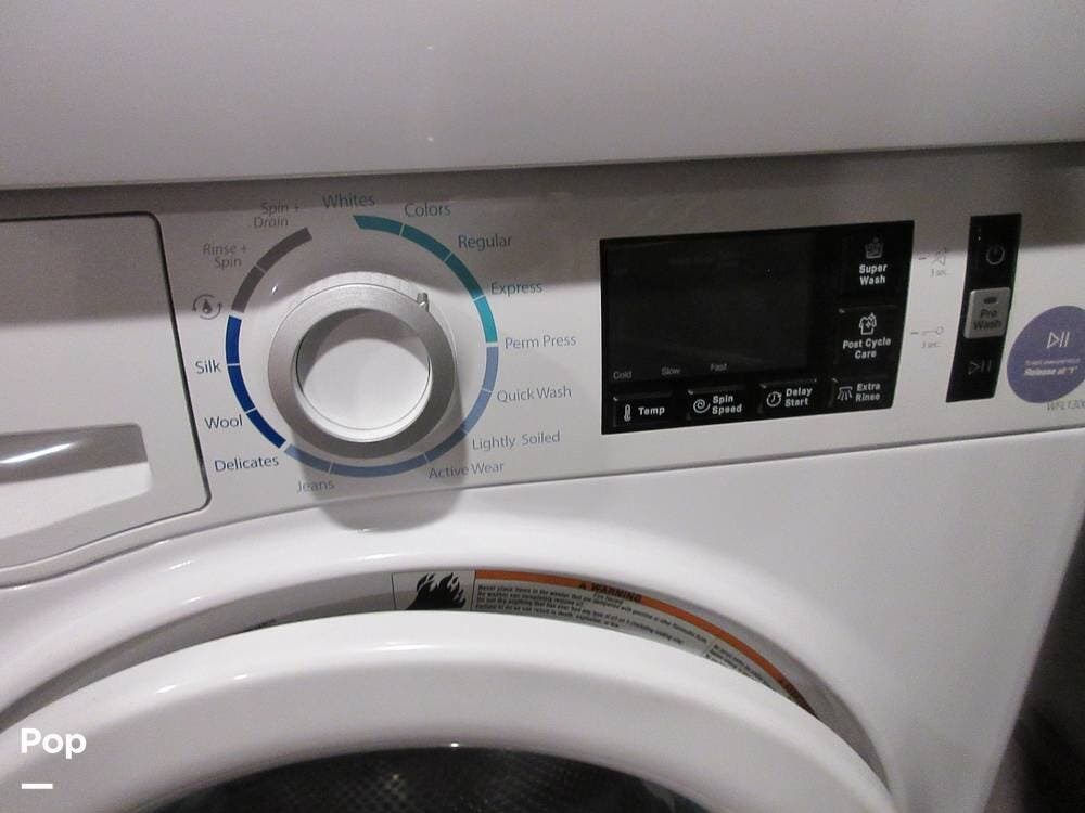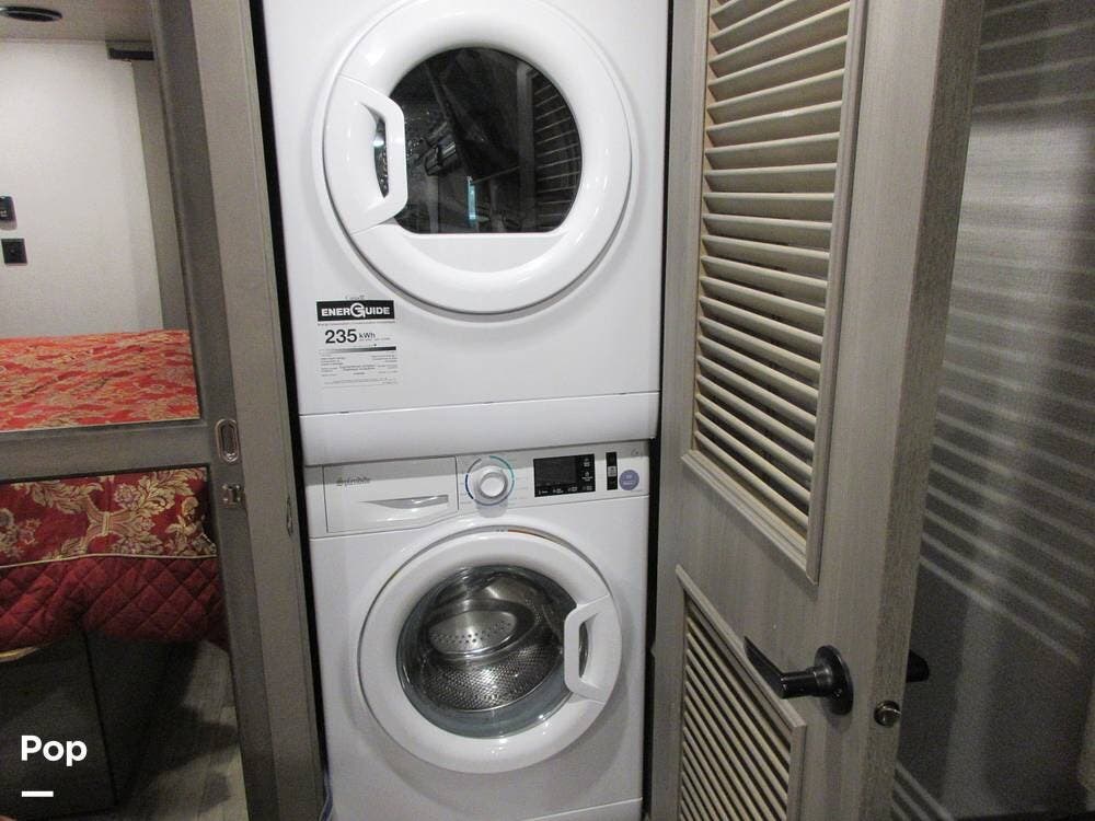If some of your guests need to spend the night, the sofa has a pull-out bed. The spacious main bedroom at the front of the RV has a comfortable king bed. And if you need to do laundry, a stacked washer and dryer are installed in the bedroom closet.