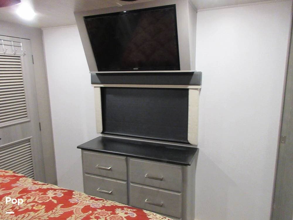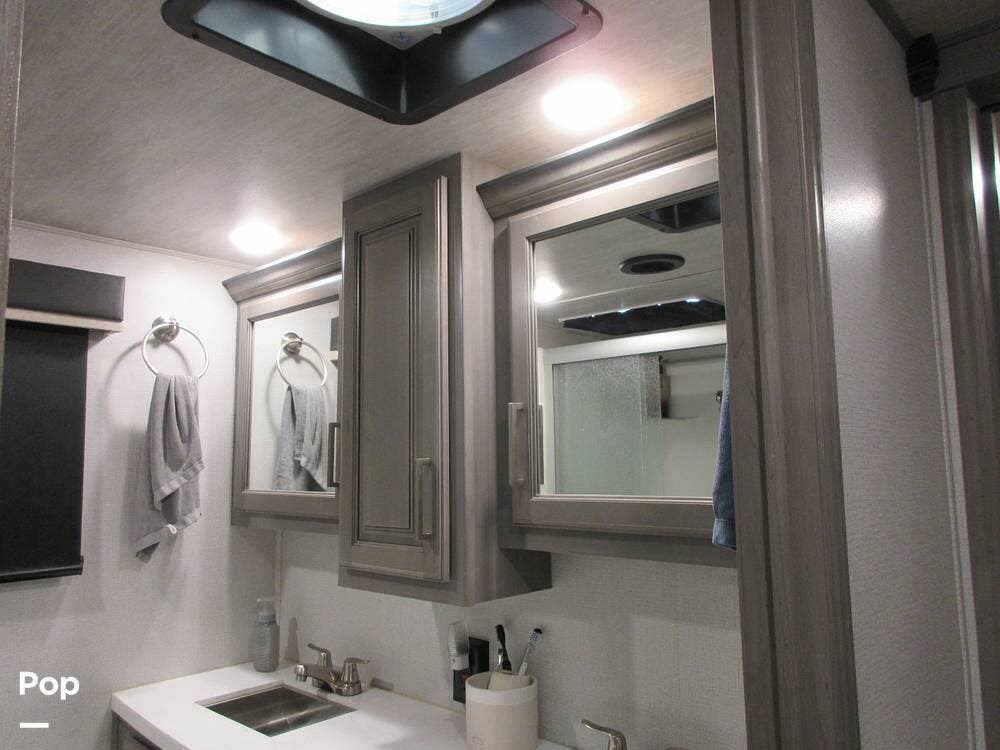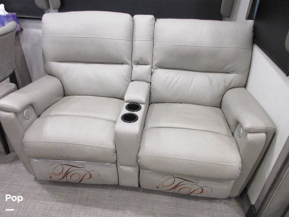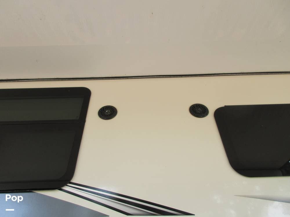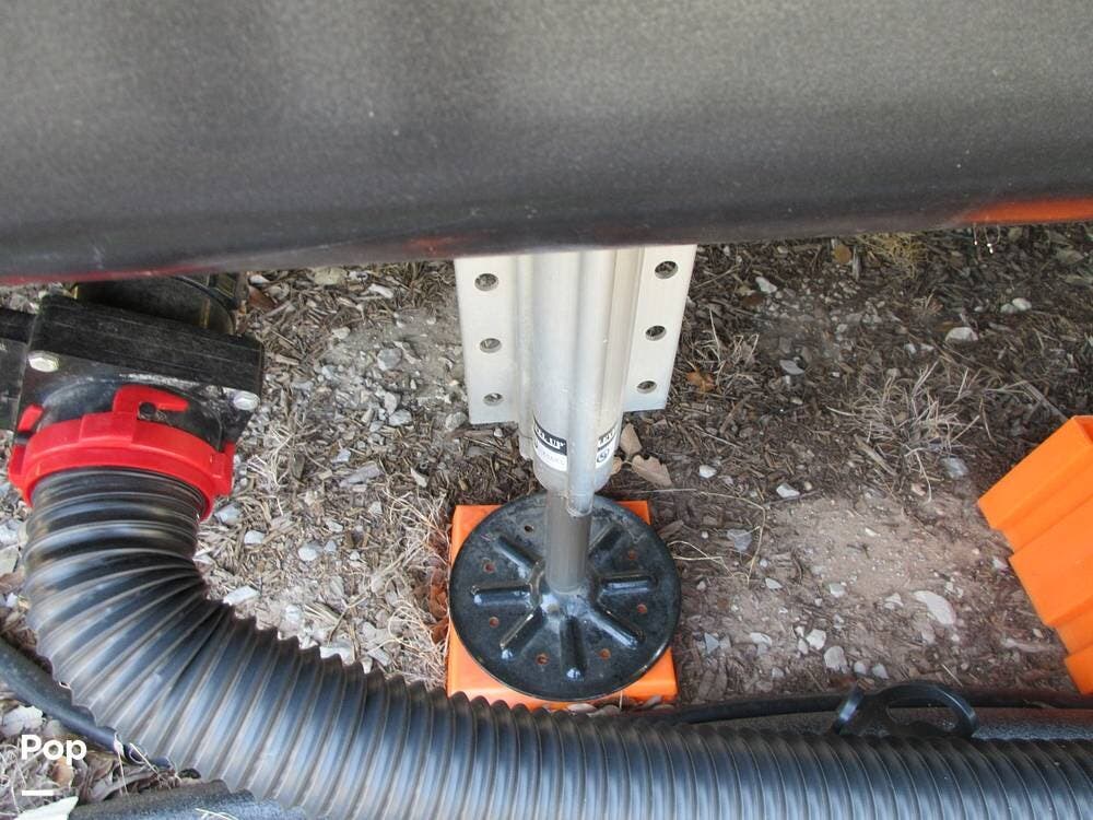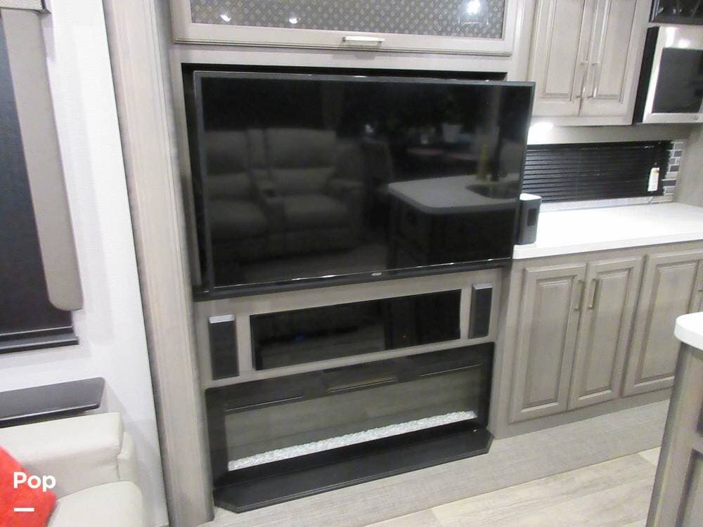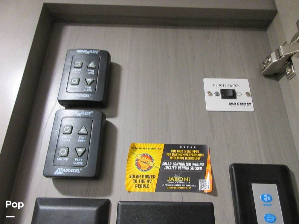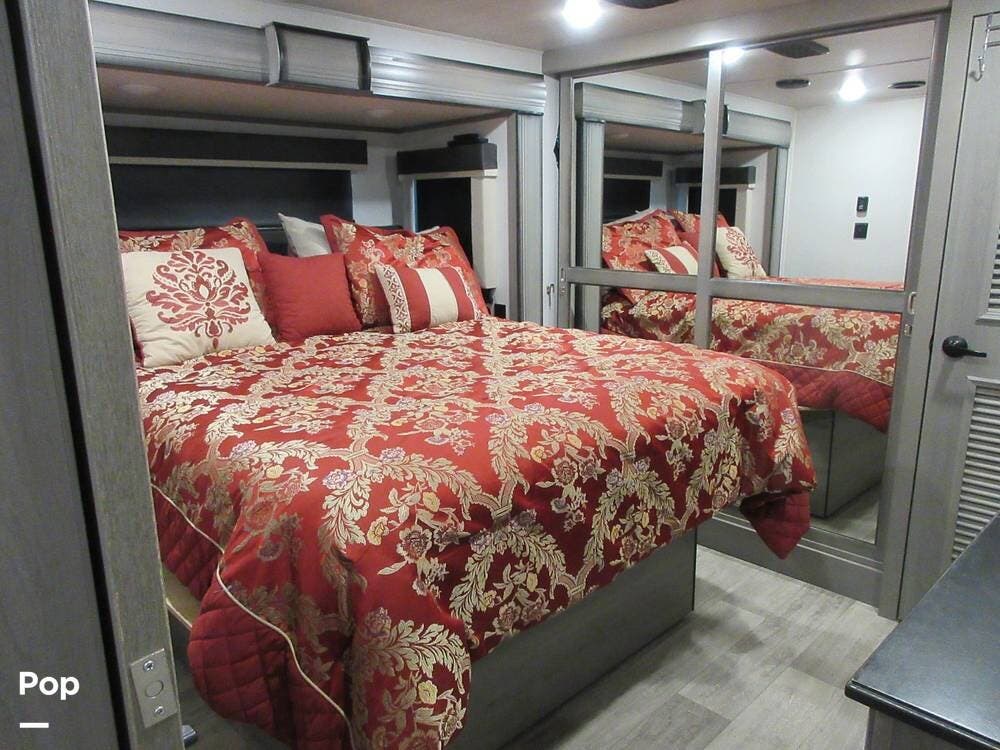 Extras include a central vacuum system, a backup camera, two extra dining chairs, and more. This RV has a Reese Goose Box hitch installed for towing. However, the original fifth-wheel hitch is also available if you prefer that option.