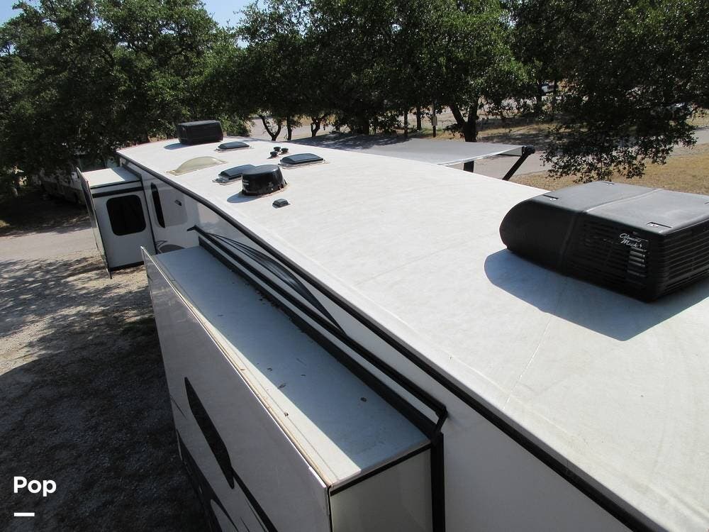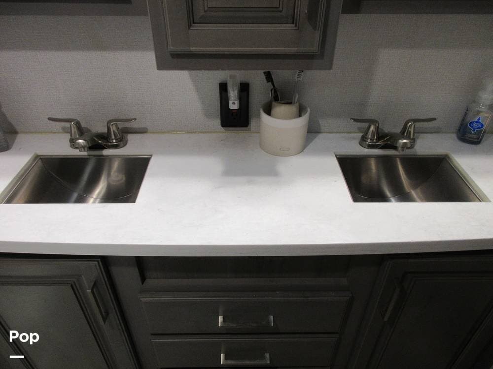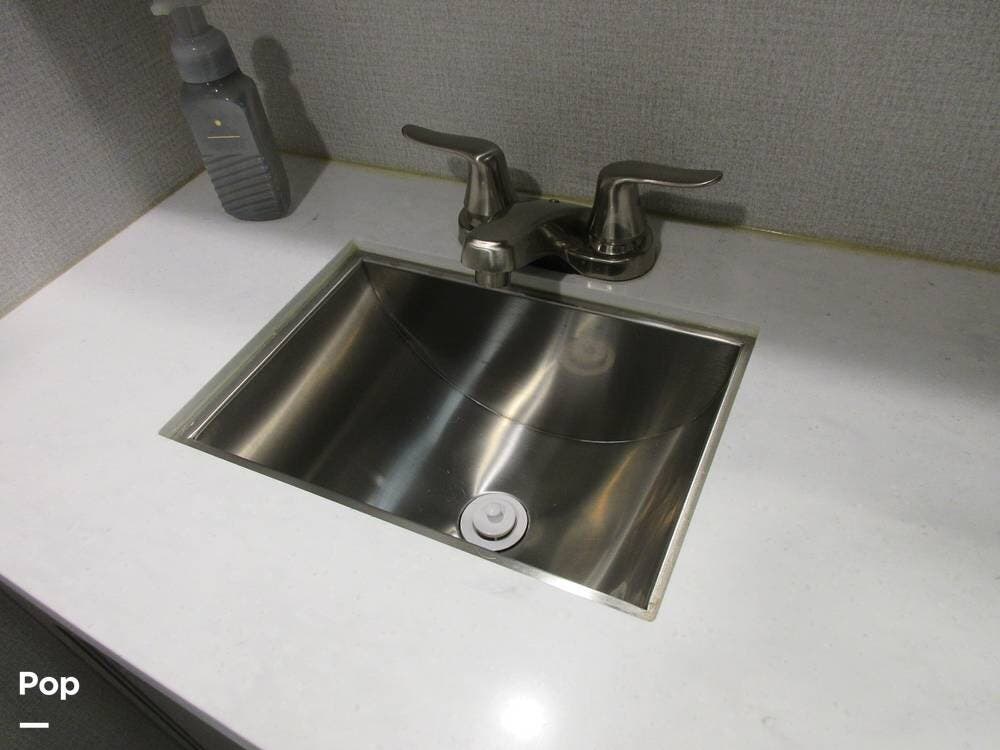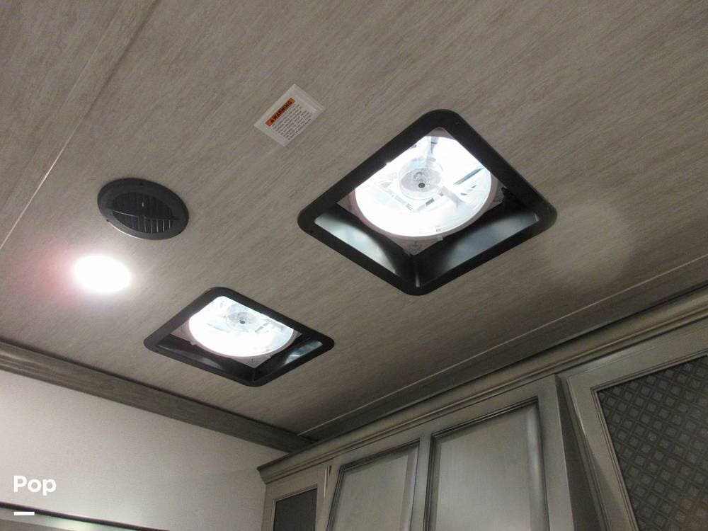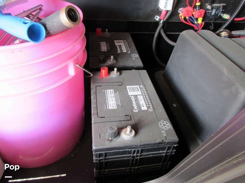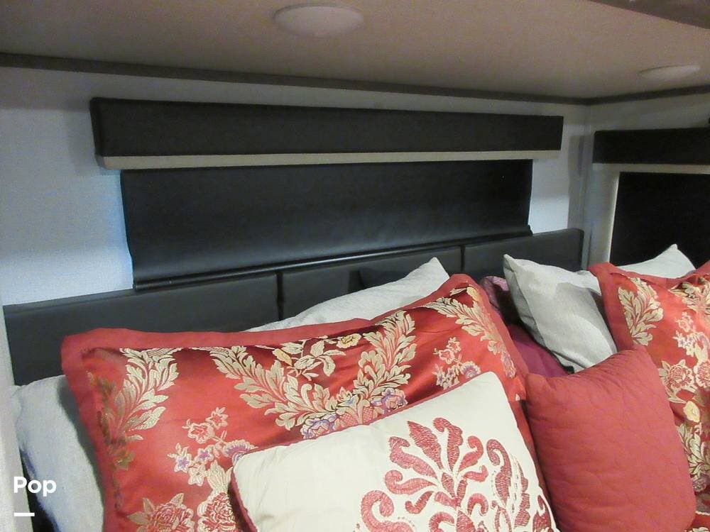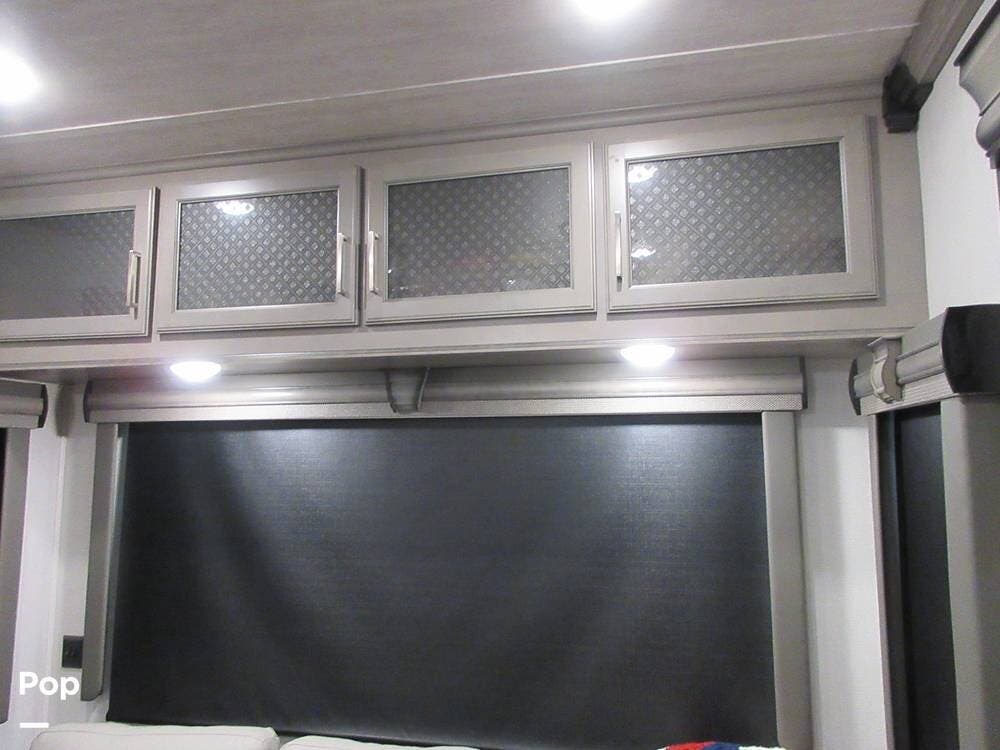 Extras include a central vacuum system, a backup camera, two extra dining chairs, and more. This RV has a Reese Goose Box hitch installed for towing. However, the original fifth-wheel hitch is also available if you prefer that option.