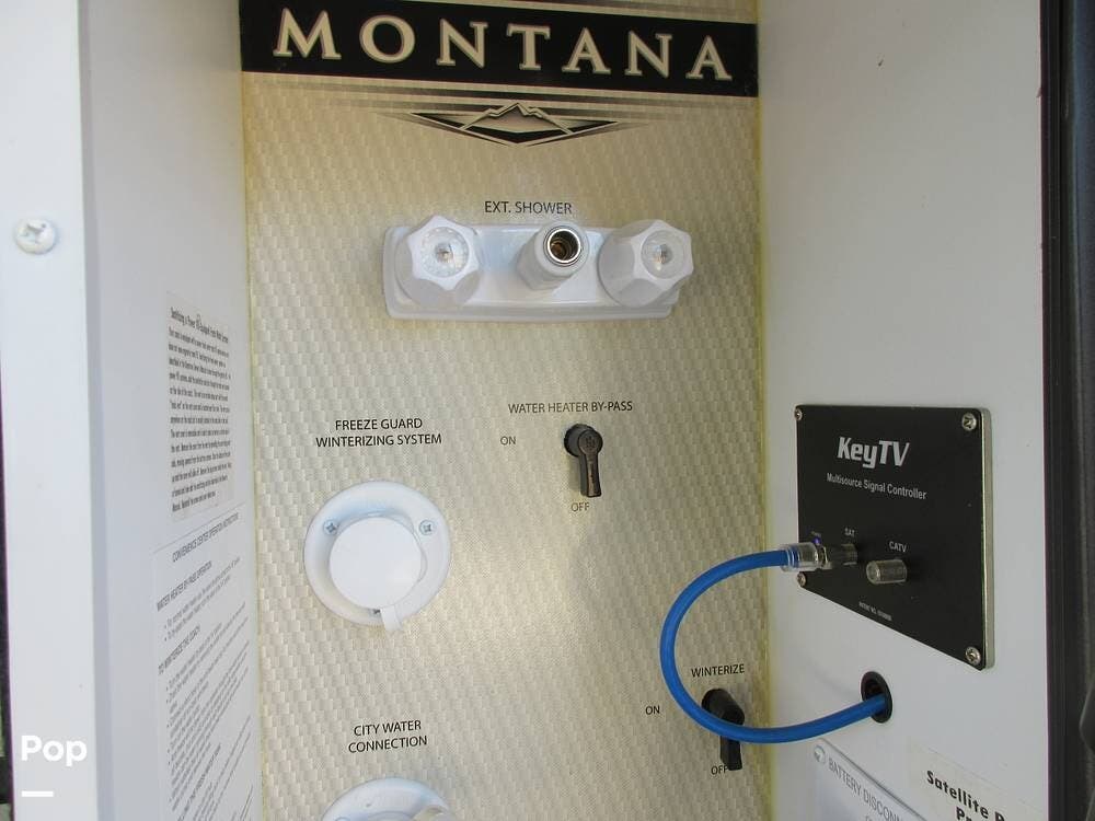 This roomy three-slide Montana has auto-leveling and is ready for any RV Park with 50 amp power. If you wander off the grid, support is provided with a 66-gallon fresh water tank, an 88-gallon gray tank, a 49-gallon black tank, and two 30-lb propane tanks.