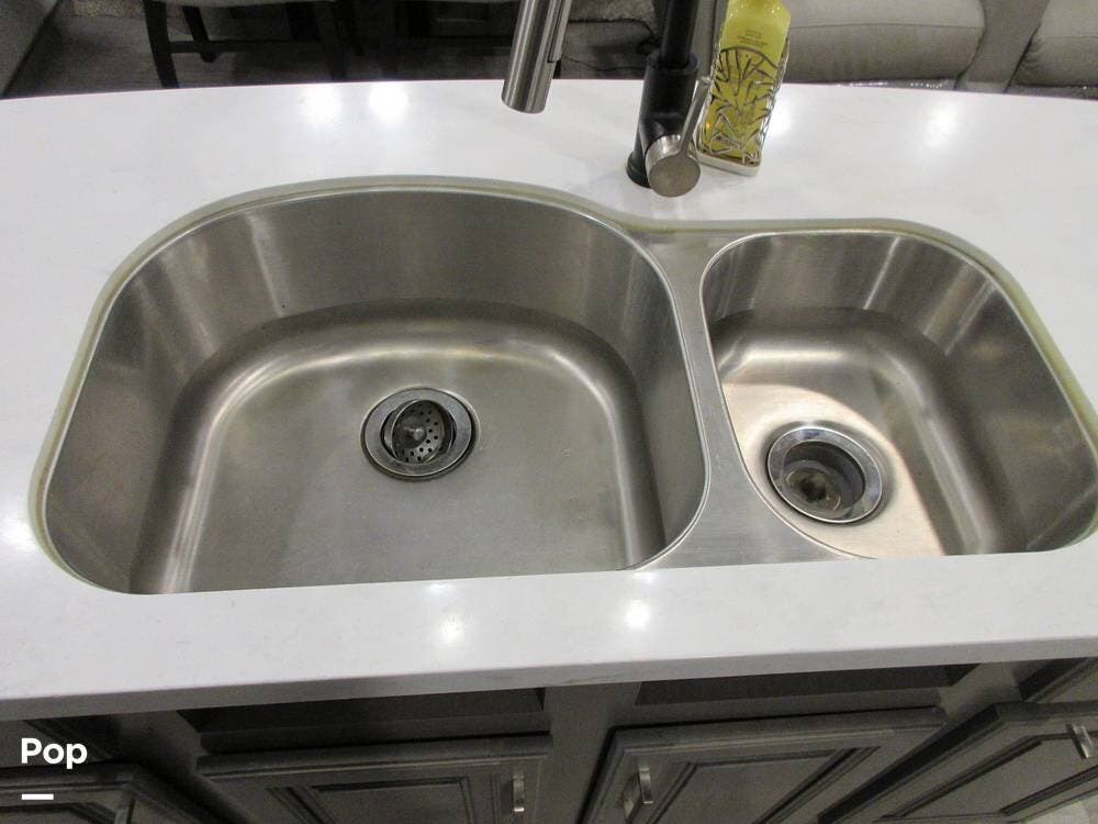 Do you like to cook? Or is eating your best talent? Either way, you will appreciate the roomy kitchen area, equipped with a stove, oven, microwave/convection, and a large residential refrigerator. The island and side countertops have lots of counter space for preparation, and the double sink is perfectly sized for clean-up time. The cabinet to the right of the stove slides out for even more counter space.