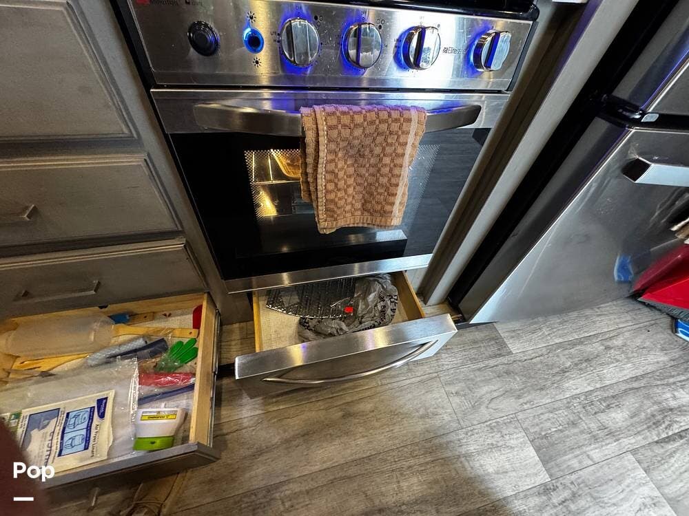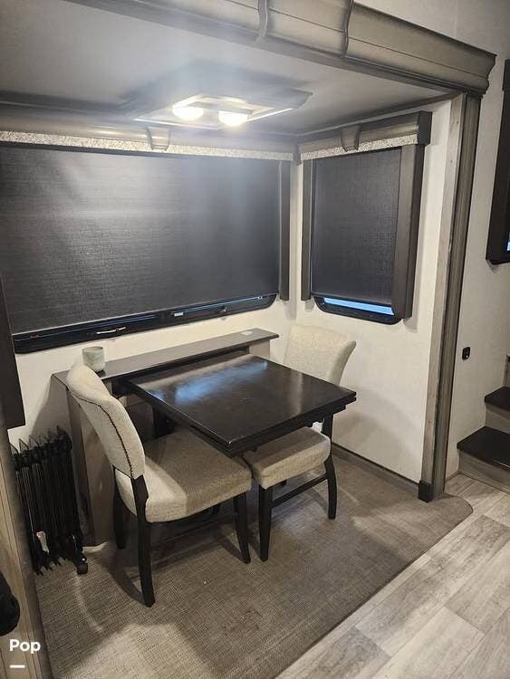 This Montana 3761FL isn't just about opulence; it's built for adventure. Hardwood cabinetry adds a sophisticated touch, while the solar panel ensures you're prepared for off-grid living. Two patio awnings and slide-out awnings expand your outdoor space, letting you enjoy the fresh air in comfort.
