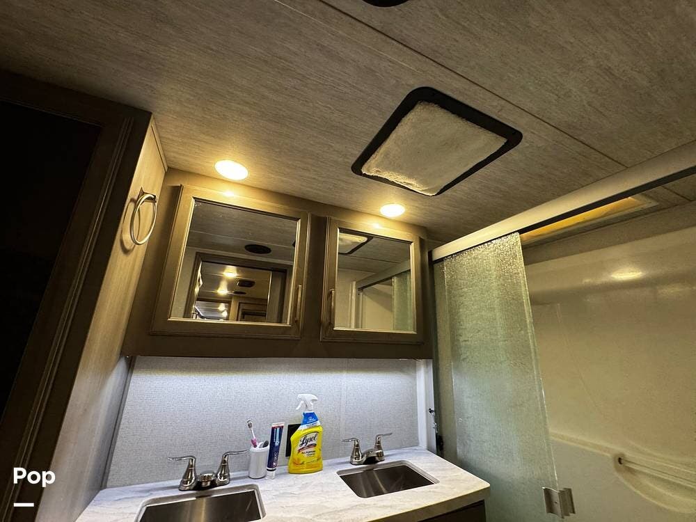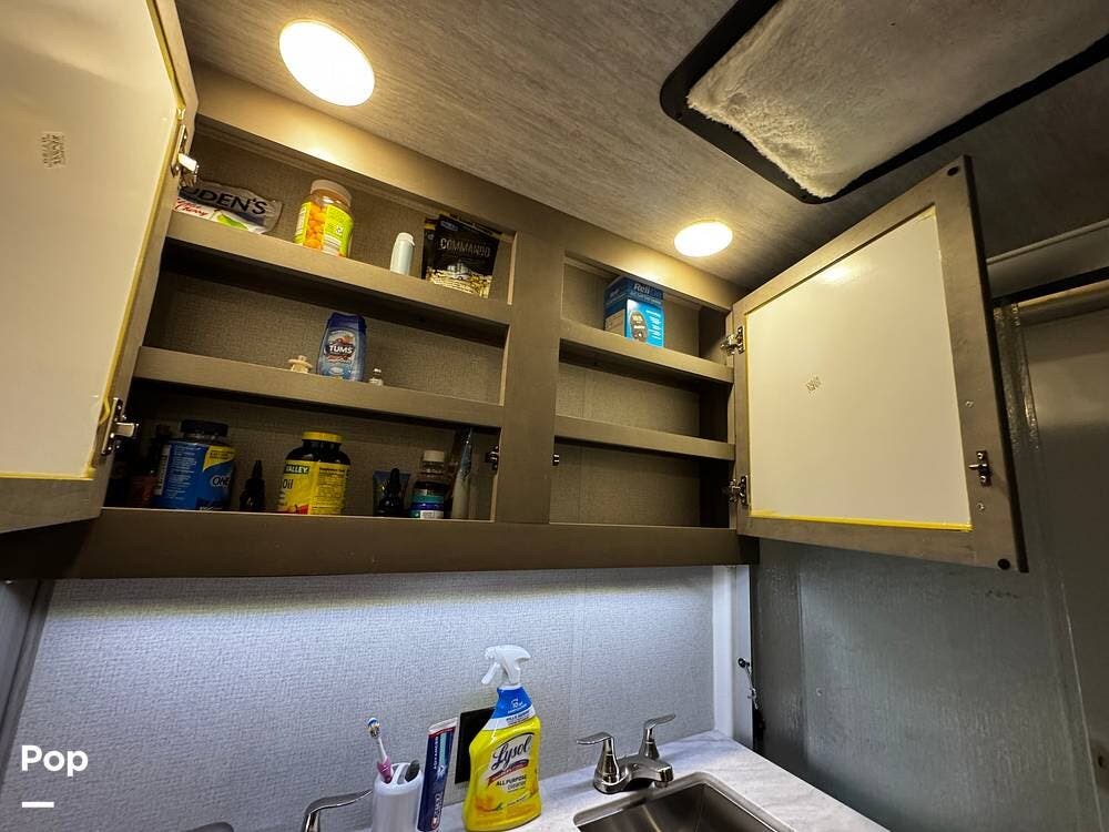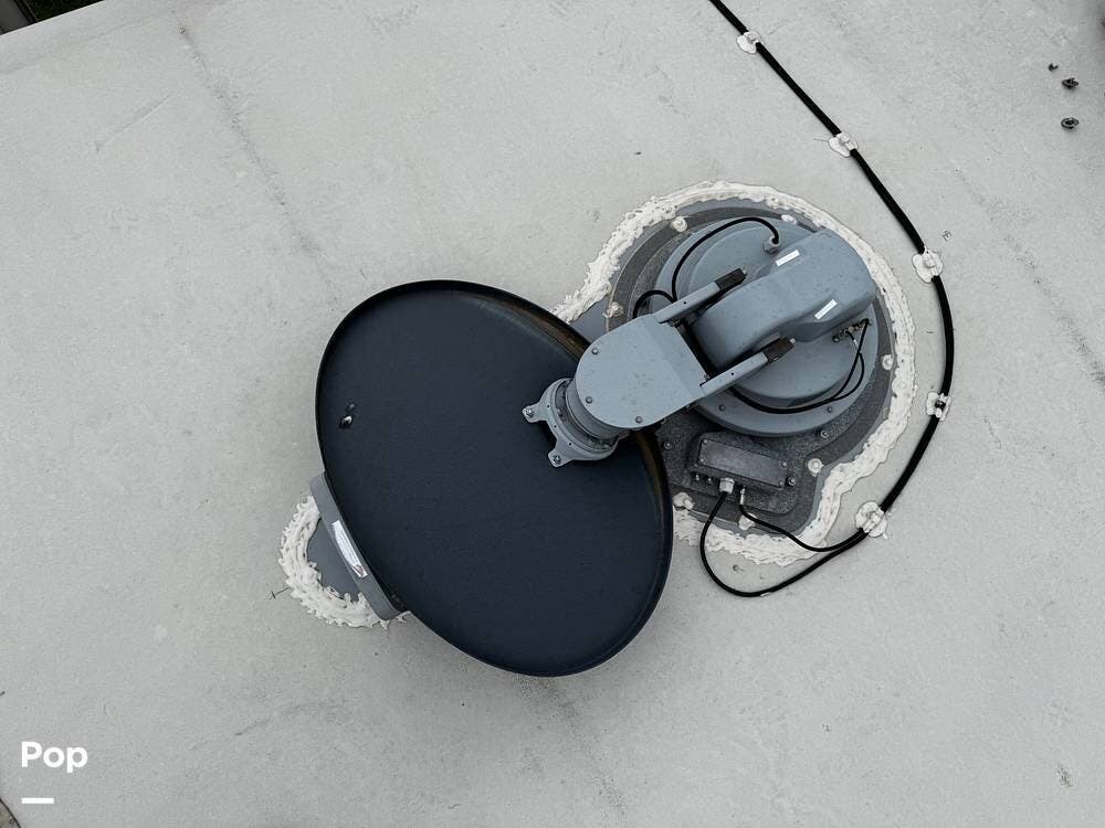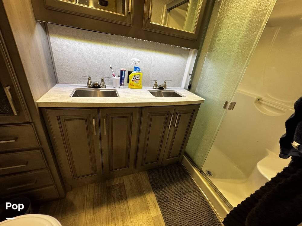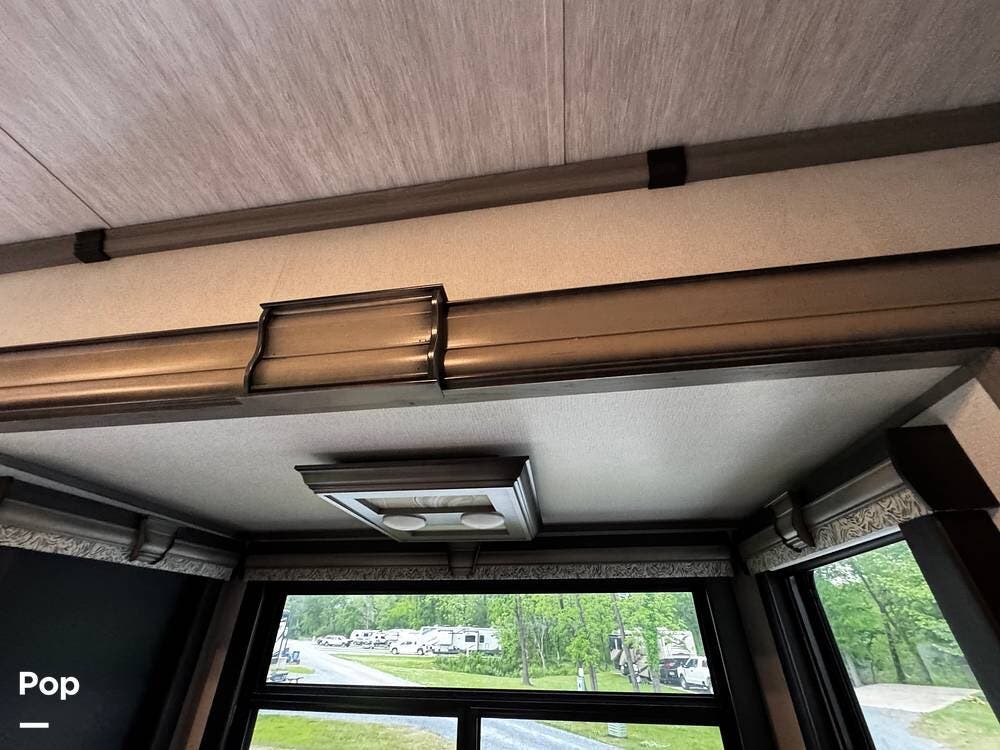 Upon entering, you'll be greeted by the elevated front living area, designed to maximize relaxation and entertainment. Two comfortable sofa sleepers and plush theater seats provide the perfect setting for unwinding after a day of adventure. With panoramic windows surrounding the space, you'll enjoy sweeping views wherever you park. The entertainment center, with a cozy fireplace and a televator, sets the mood for intimate evenings with friends and family.