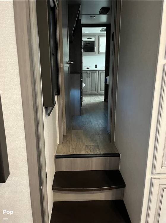 The Montana has some easy set-up features, like an electric patio awning with LED lights, Hitch Vision with LED lighting, and MORryde Step Above entry steps with strut assist for an easy entrance.