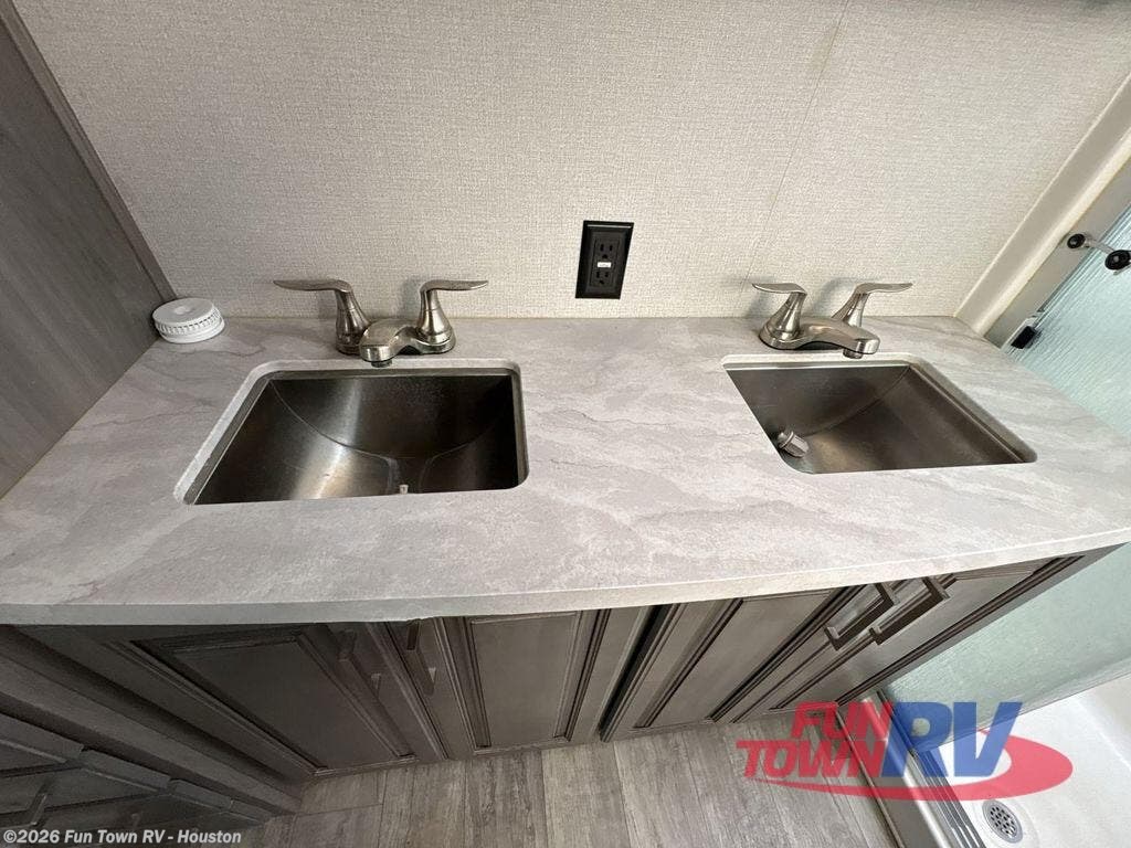 You and your family will feel the most at home when you are staying in this Montana fifth wheel because it has all of your favorite features from home, like a separate living room up front, a master suite with its own full bathroom, another half bathroom out in the kitchen, and an island in the kitchen for prep work. The other aspect of this unit that you will love is all of the comfortable seating with the two hide-a-bed sofas and power theater seating in the living room. There is also a fireplace and 50" LED HDTV in the living room to finish it off, and you will even find a second LED HDTV back within the master suite.