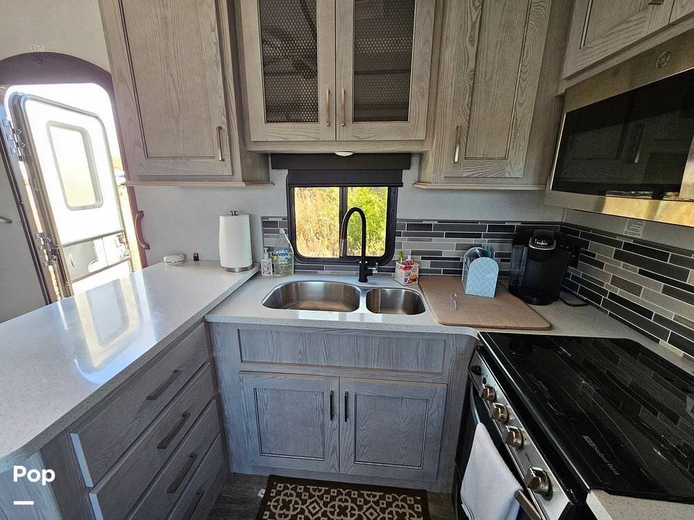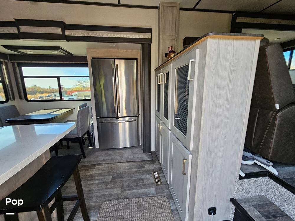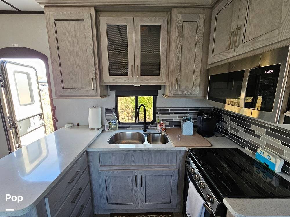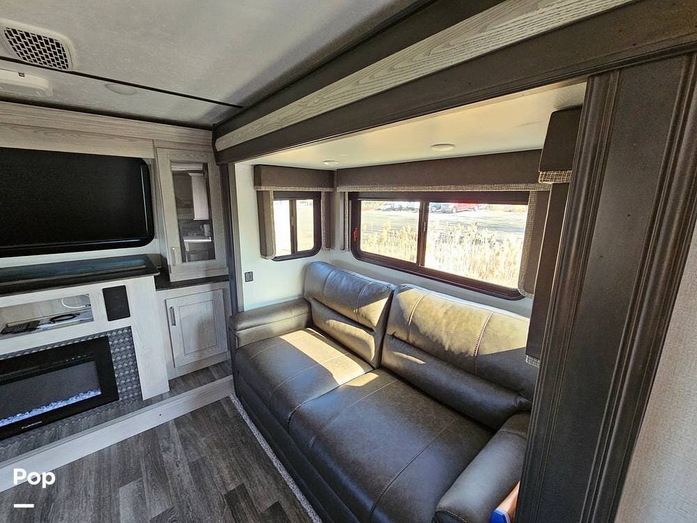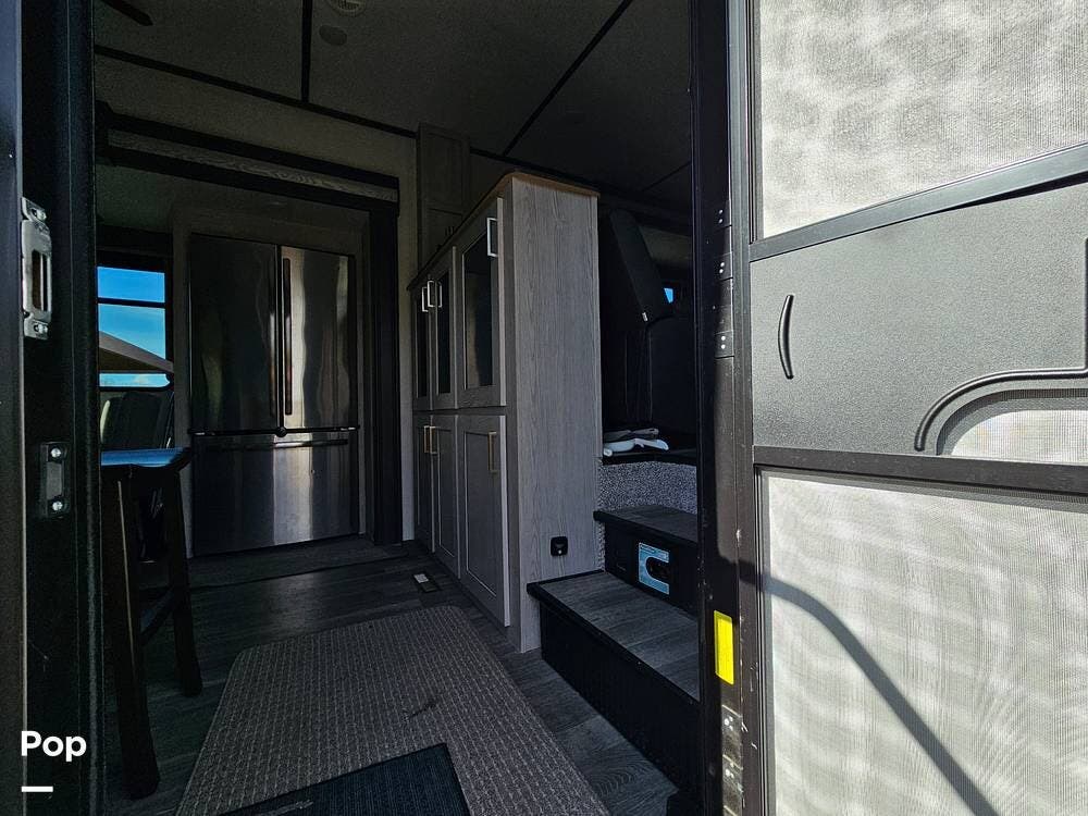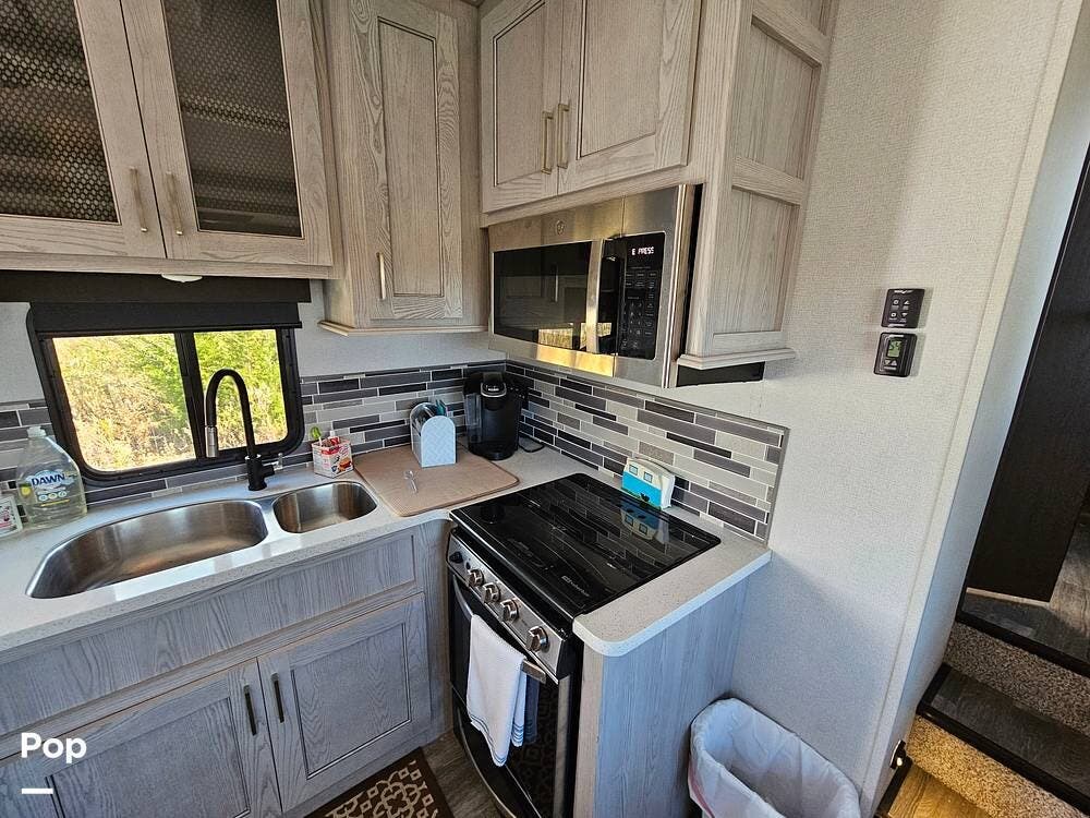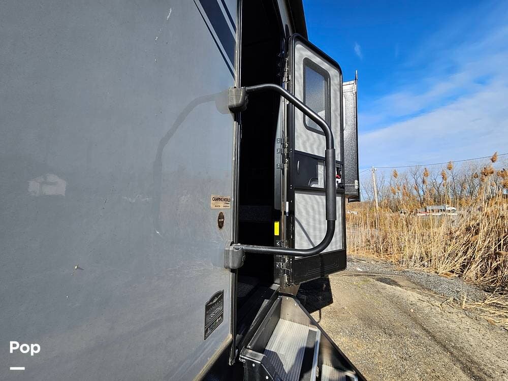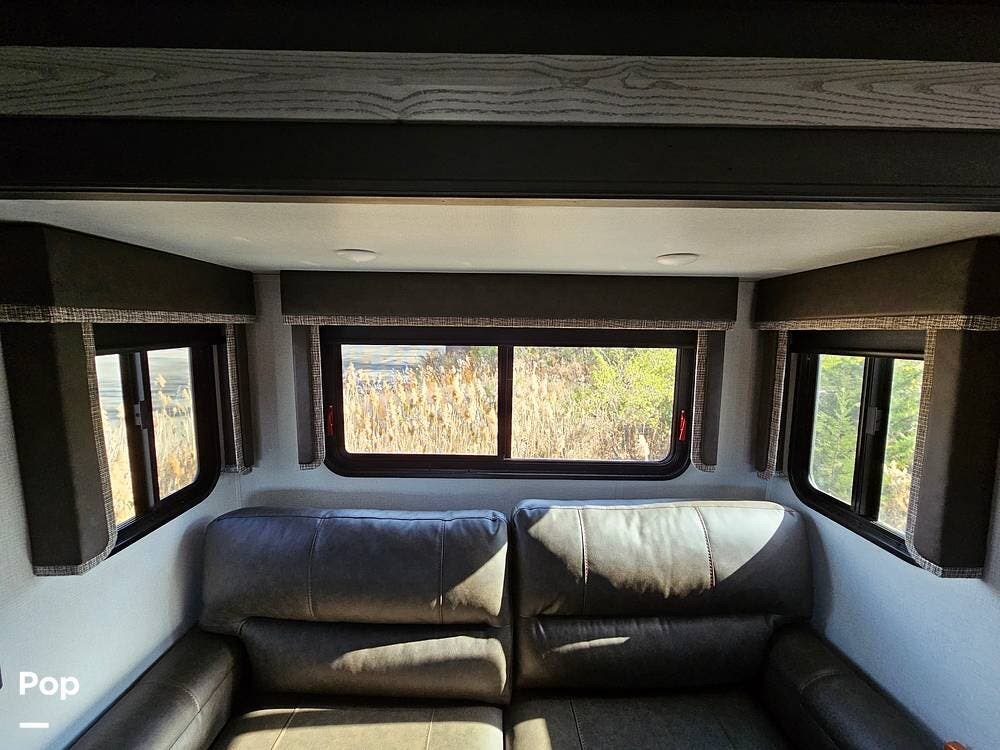 This fifth-wheel toy hauler is designed to elevate your travel adventures with comfort and functionality.