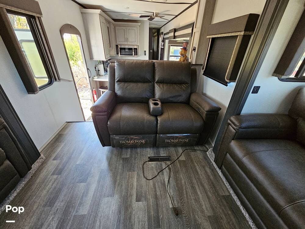The modern living area has a theater-style recliner, two sleeper sofas, and a cutting-edge entertainment system, making it an ideal setting for creating unforgettable memories with family and friends.