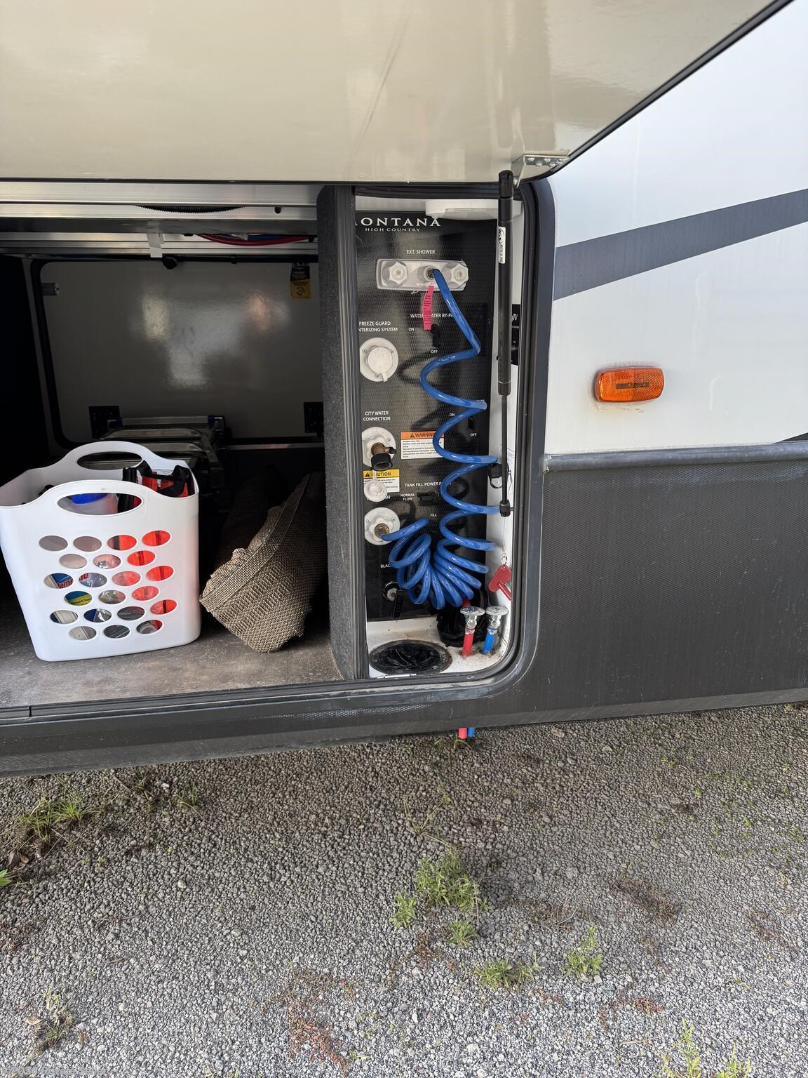 With its durable construction and top-of-the-line features, this fifth wheel is built to last and ready for your next adventure. Whether you're hitting the open road for a weekend getaway, embarking on a cross-country journey, or you're a full-time RVer, the Keystone Montana High Country 331RL is the perfect travel companion. The inverter keeps the refrigerator/freezer running while you're driving cross-country. The fully automatic jack leveling system makes it easy to setup. It also includes: two new 14-ply tires, a superior Anderson Fifth Wheel hitch for easy hookup, a 50-amp power cord (& 30-amp adapter), sewer hoses, water hose, cable TV wire, a tripod front-end stabilizer when the RV is parked, jack pads & wheel chocks, and outdoor rug. Experience the ultimate in comfort, style, and convenience with this exceptional fifth wheel trailer priced to sell below RV dealer prices.