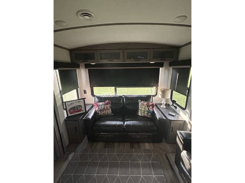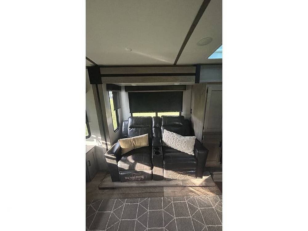 Nicely appointed, with a forward bedroom and an open floor plan, you'll find features like a king bed, sleeper sofa, theater seating, and a compact kitchen, too.