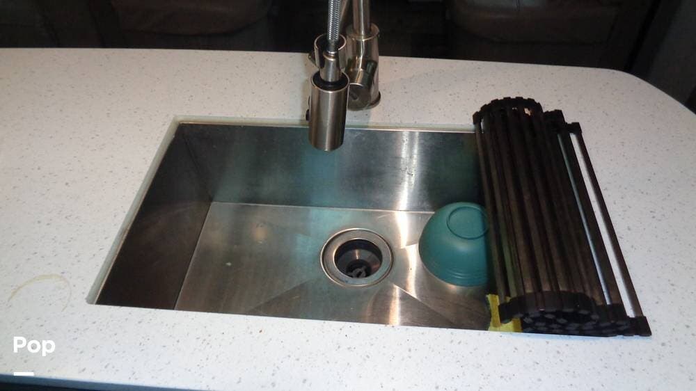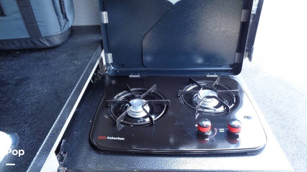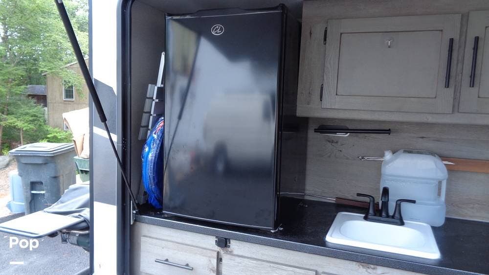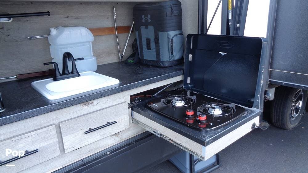 Enhance your outdoor experience with a convenient outdoor kitchen that includes a sink, stove, refrigerator, and bumper-mounted grill!