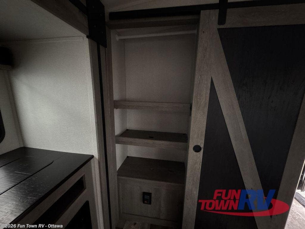 With any Keystone Outback travel trailer and toy hauler you will enjoy a lighter wallboard and white countertops for the modern farmhouse feel with more refined flooring, furniture, and cabinet hardware. You can extend your camping season thanks to the Astro-foil barrier added to the fully enclosed underbelly with ducted heat, the Coleman-Mach Quiet Series A/C offering a significant reduction of in-cabin sound levels, and an upgraded 10 cu. ft. 12V GE refrigerator to mention a few notables. The Lippert Step Above entry steps, the water docking station, the rear ladder, and the HyperDeck high performance, water-resistant RV floor are a few more reasons you will want to own an Outback for years to come!