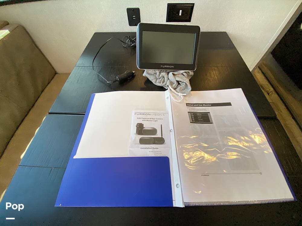 This great RV has solar prep and washer/dryer prep installed, and an aftermarket camera system installed to help while towing.