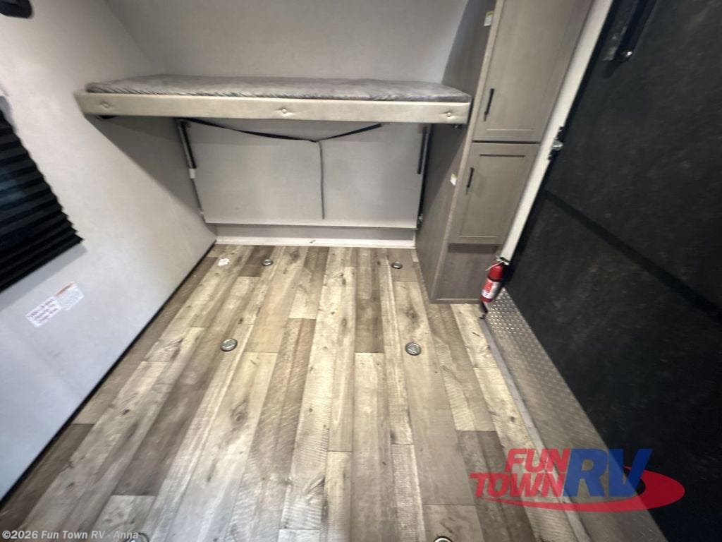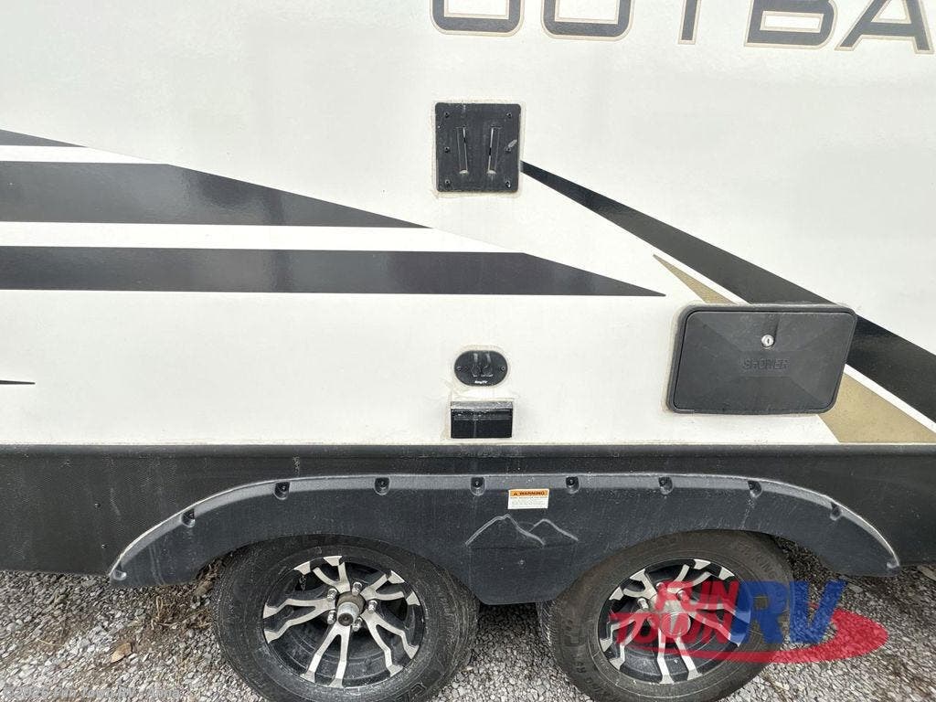 The kids will love having their own double-size bunk beds each night so that their friends can join them on campouts in this Outback Ultra Lite travel trailer, and you will appreciate having your own private bedroom on the opposite side with a walk-around queen bed, a built-in pet kennel for your best friend, plenty of clothing storage, and a laundry chute. You can make meals inside with full amenities or outdoors on the outside kitchen. The 21' awning, the SolidStep entry, and the pass-through storage are outside features that provide protection from the elements, a safe entry and exit, and space to keep your camping chairs, outdoor games, and such. Back inside you will have your own full bathroom to get cleaned up in, a booth dinette to play games and eat meals, and handy shoe storage as you enter.