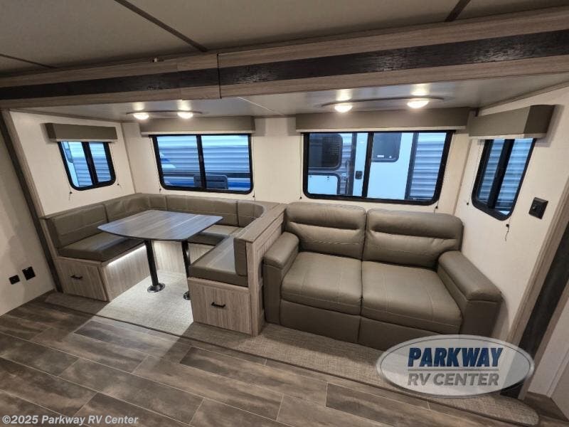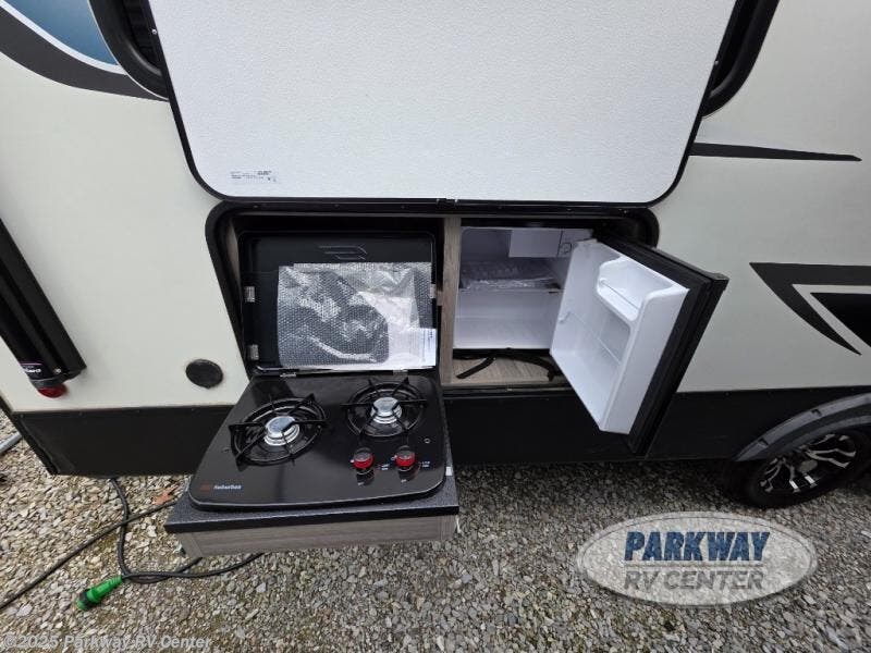 Let your days turn into weeks and your weeks turn into months with this Passport travel trailer! You can keep all of your gear stored effortlessly in the rear cargo door and the front pass-through storage compartment, and the interior also offers some storage space with the bedside wardrobes and large kitchen pantry or utilize this space as a wardrobe. You also have plenty of space to keep your perishable foods from spoiling with the interior 6-cubic foot refrigerator and in the exterior refrigerator in the outside kitchen. The tri-fold sofa sleeper and U-shaped dinette will provide you with some extra sleeping space so that you can invite friends or family to join you, and the full bathroom is going to keep everyone clean. You can also choose to add the optional Pivot furniture in place of the dinette and sofa or optional theater seats.