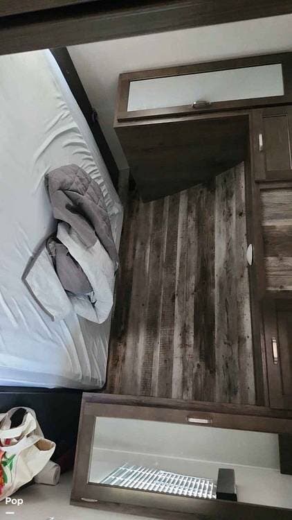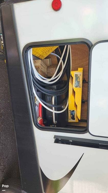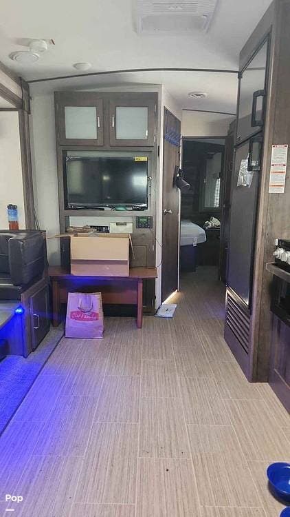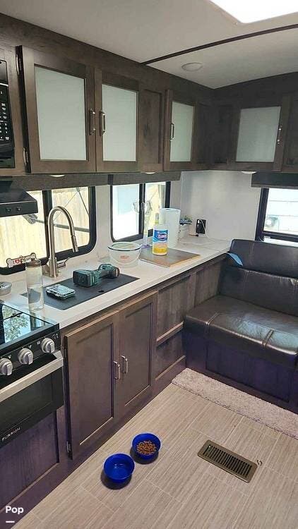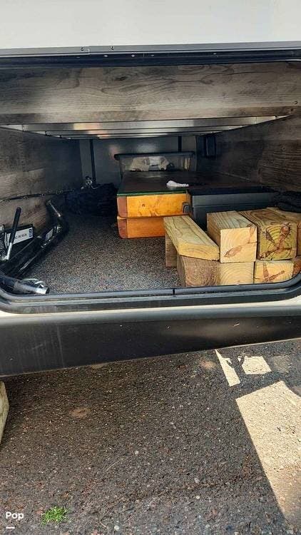 LED lights light up the night when you want to linger in the wilderness in the evening. This Keystone has tons of great storage capacity, with pass-through storage up front and under the queen bed.